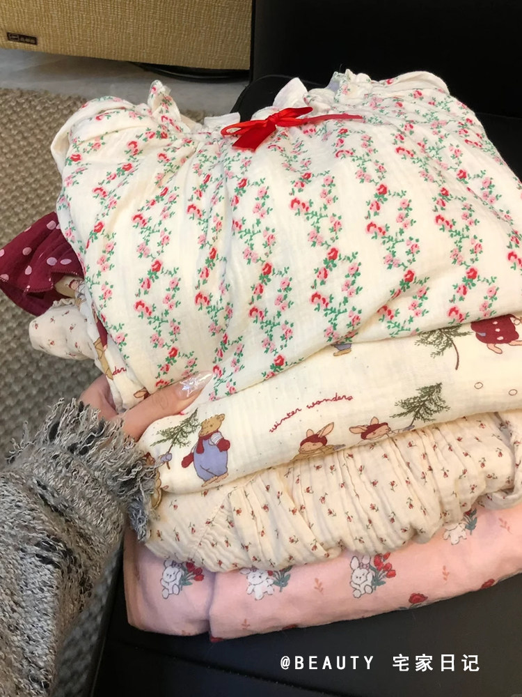 Хлопковая пижама с круглым воротником, осенний лонгслив, осенняя милая юбка, платье, цветочный принт