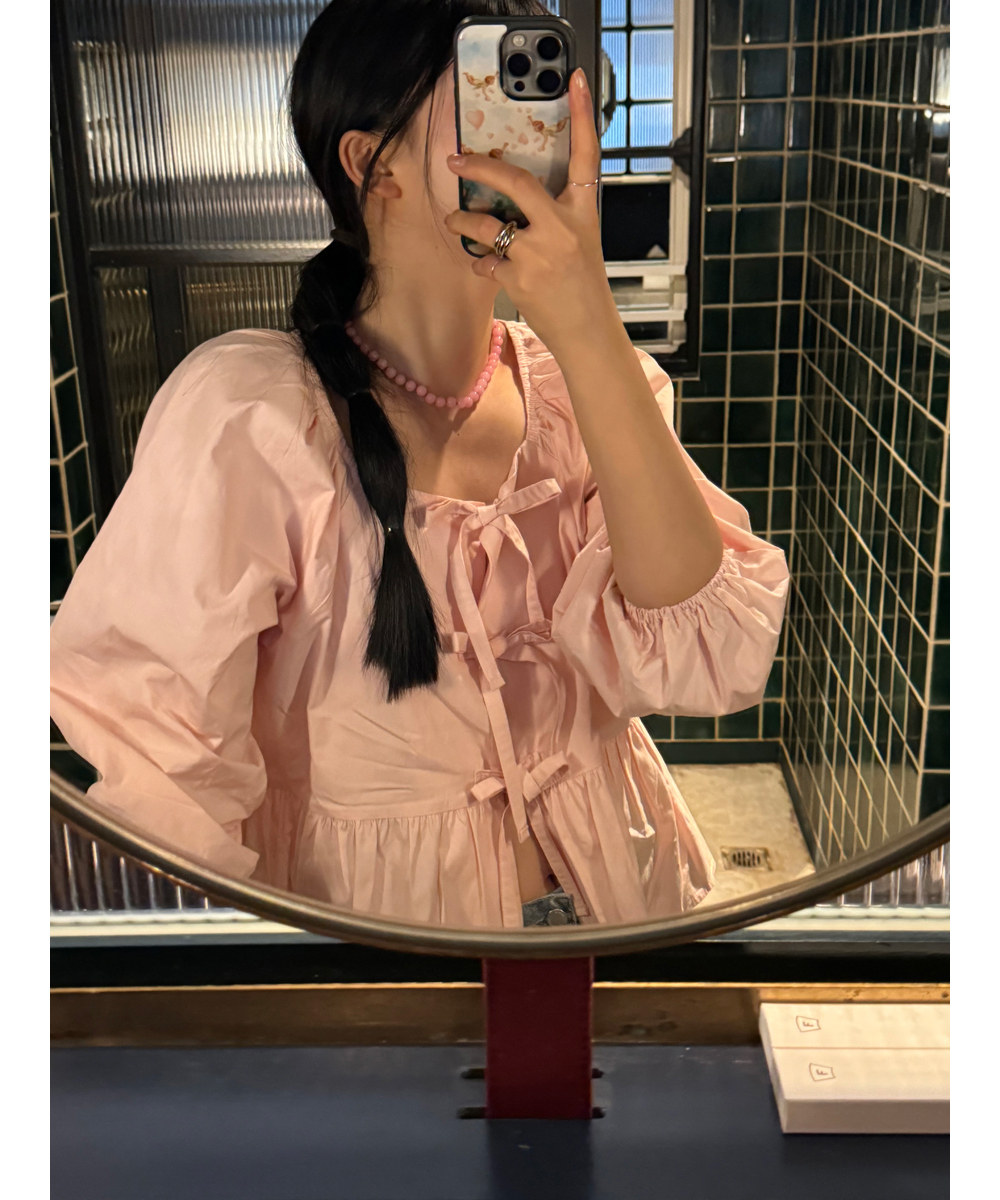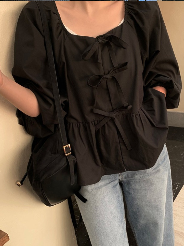 Весенняя короткая дизайнерская рубашка с бантиком, тренд сезона