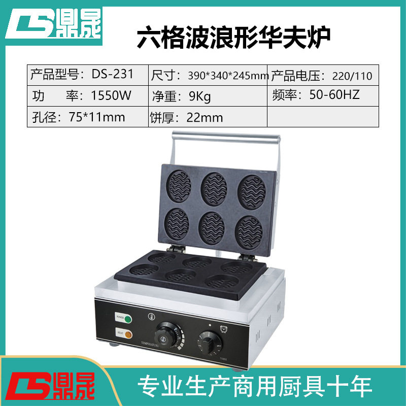 Ding Sheng DS-231 Электрический нагрев шесть сетчатых волн в форме печи Huafu Huafu Cake Muffin Машина коммерческий клетчатый торт торт клетку для пирога