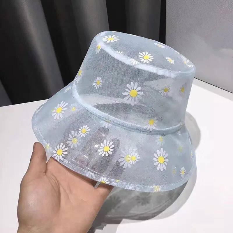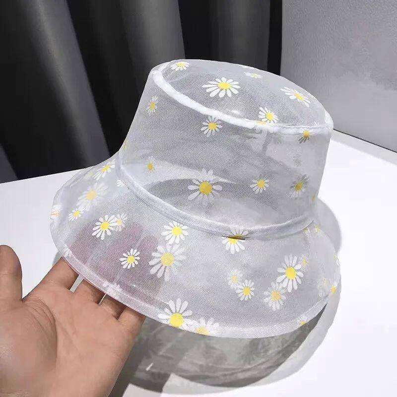 Daisies Emmroid -Bucket Hat Women Women Прозрачные кружевные цветы