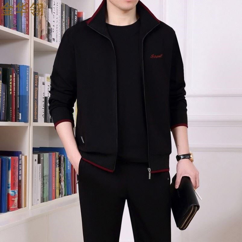 Li Ning, осенний спортивный костюм для пожилых людей, летний хлопковый комплект, для среднего возраста, 3 предмета, для бега
