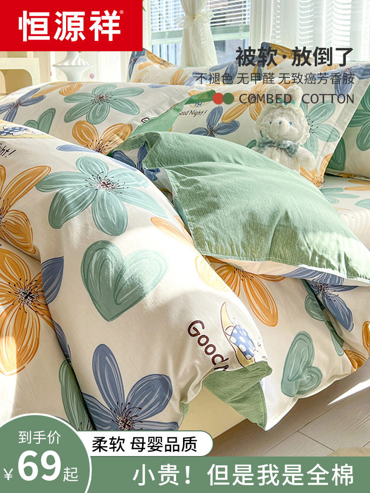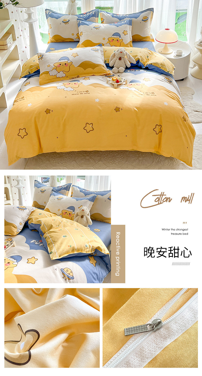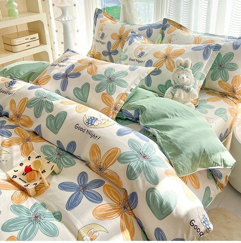 Хлопковый комплект, пододеяльник, покрывало, простыня, постельные принадлежности, 4 предмета, 3 предмета