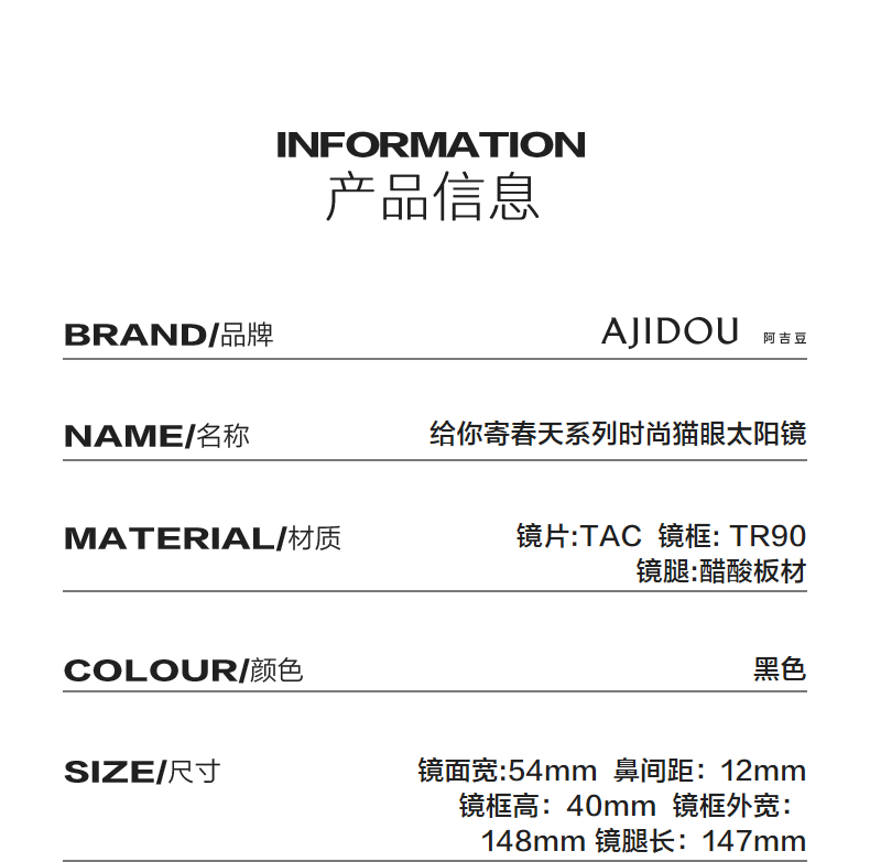 Ajidou Ajidou отправит вам солнцезащитные очки Spring Series Series Fashion's Cat Eye Sunglasses Солнцезащитные очки солнцезащитные очки солнцезащитные очки