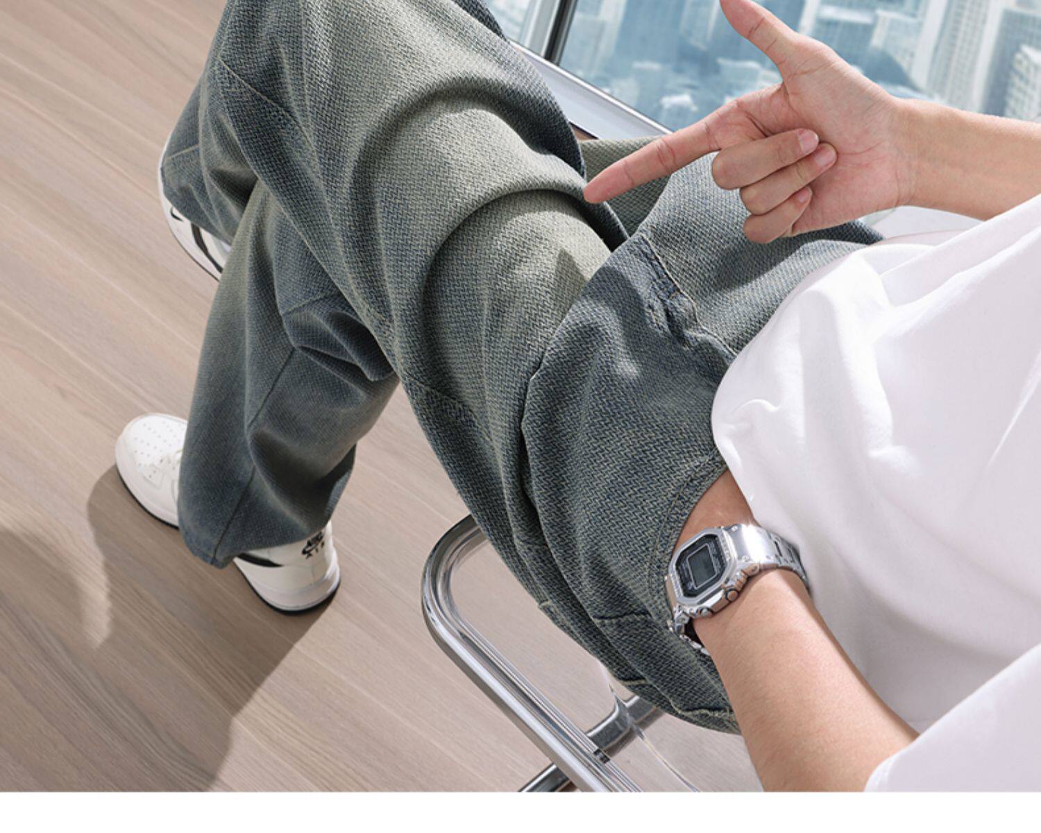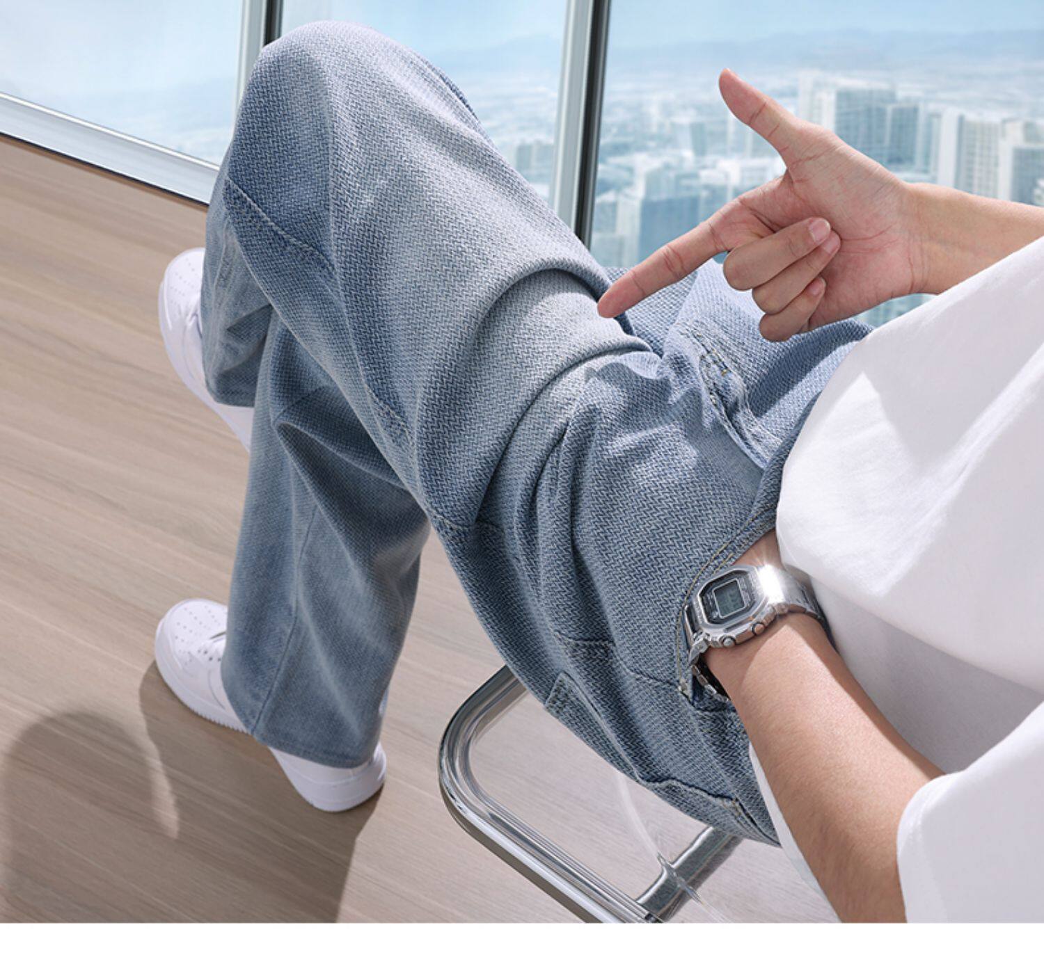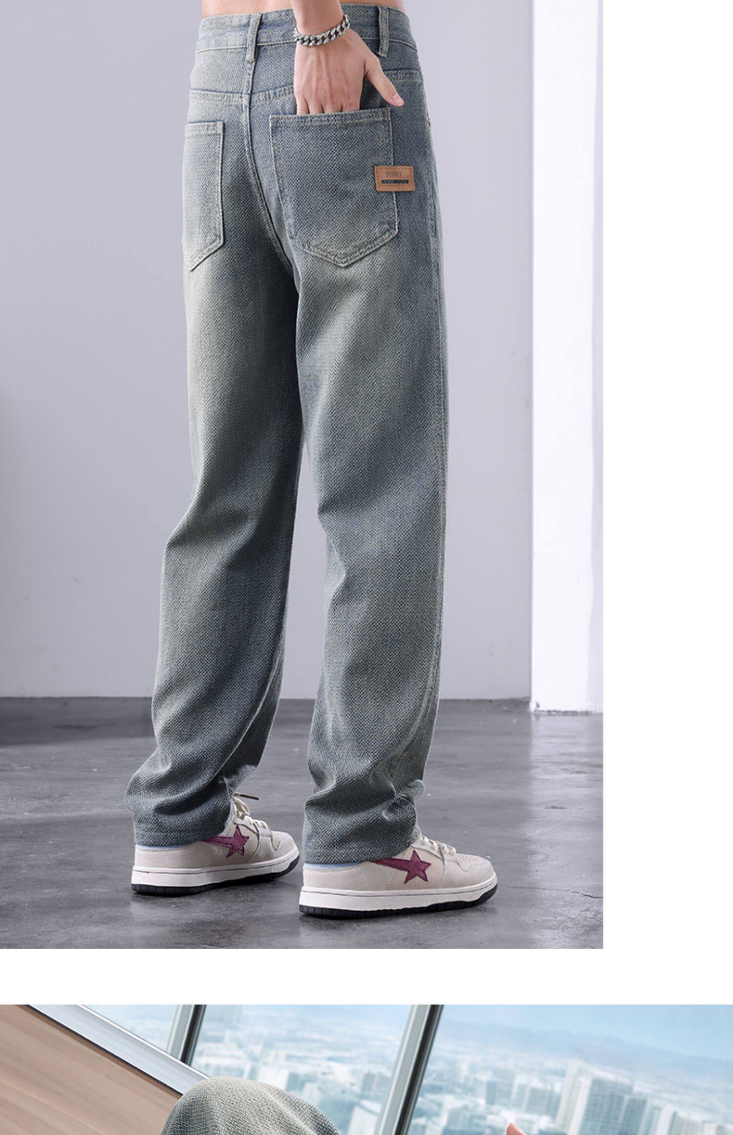 Звездное небо, летние тонкие прямые свободные джинсы, спортивные штаны, свободный крой, в американском стиле