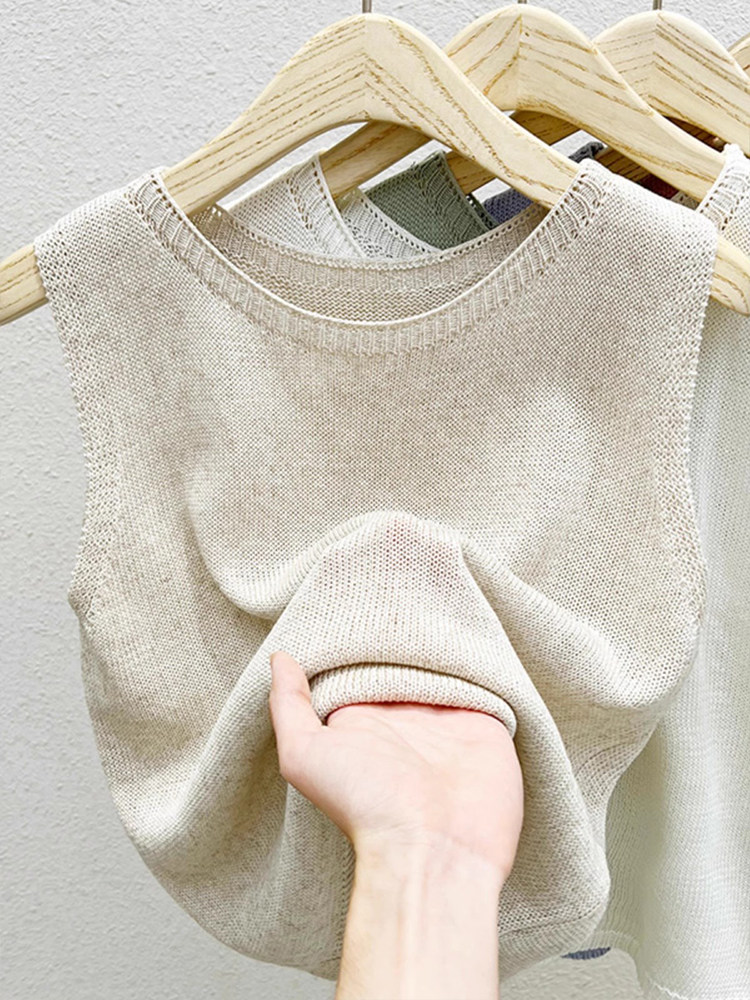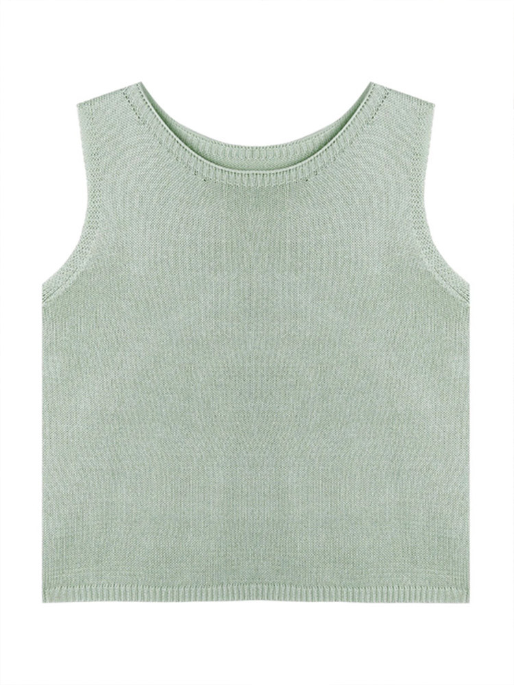 Зеленый трикотажный бюстгальтер-топ, тонкая майка топ с круглым воротником, базовый костюм без рукавов