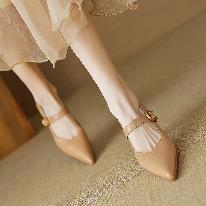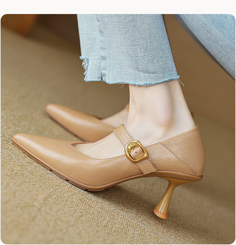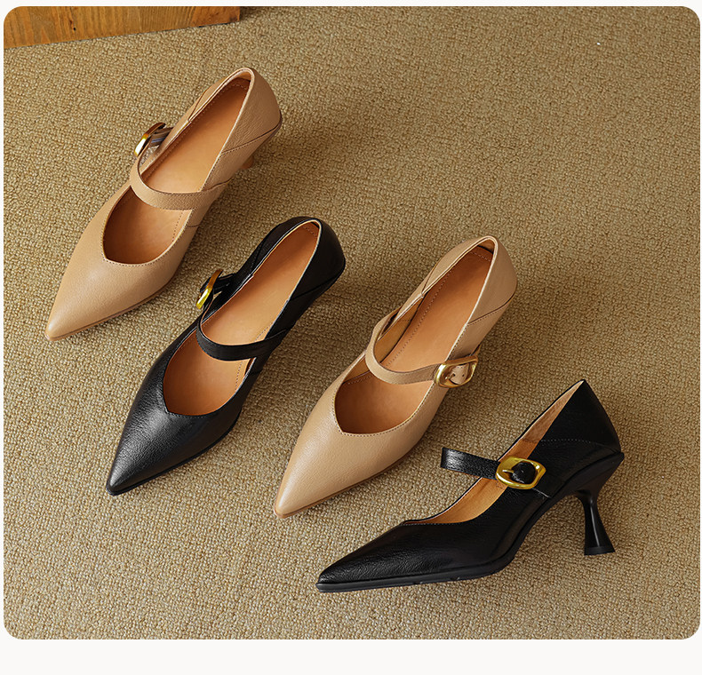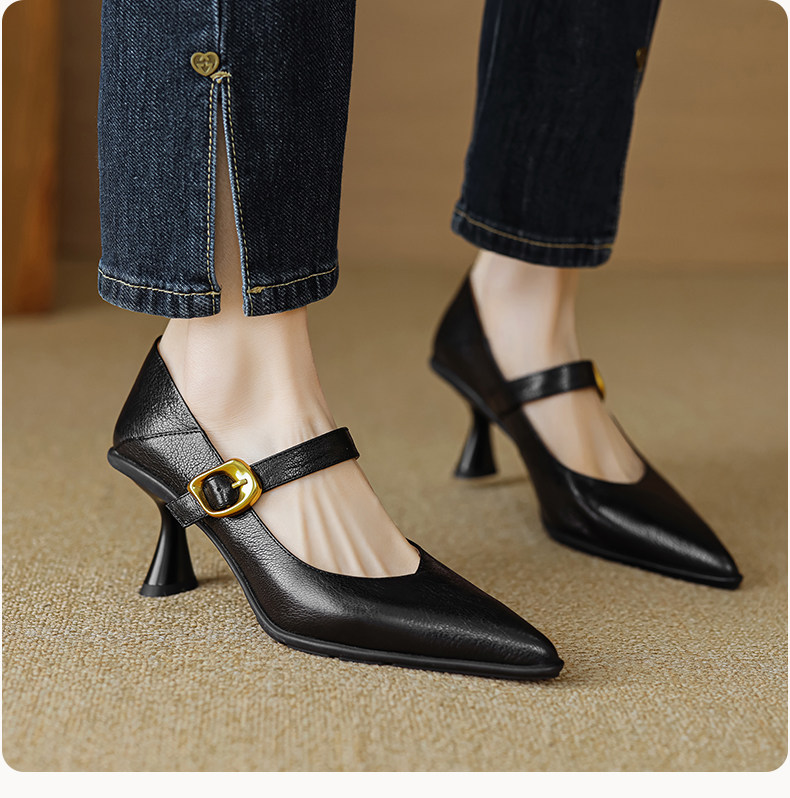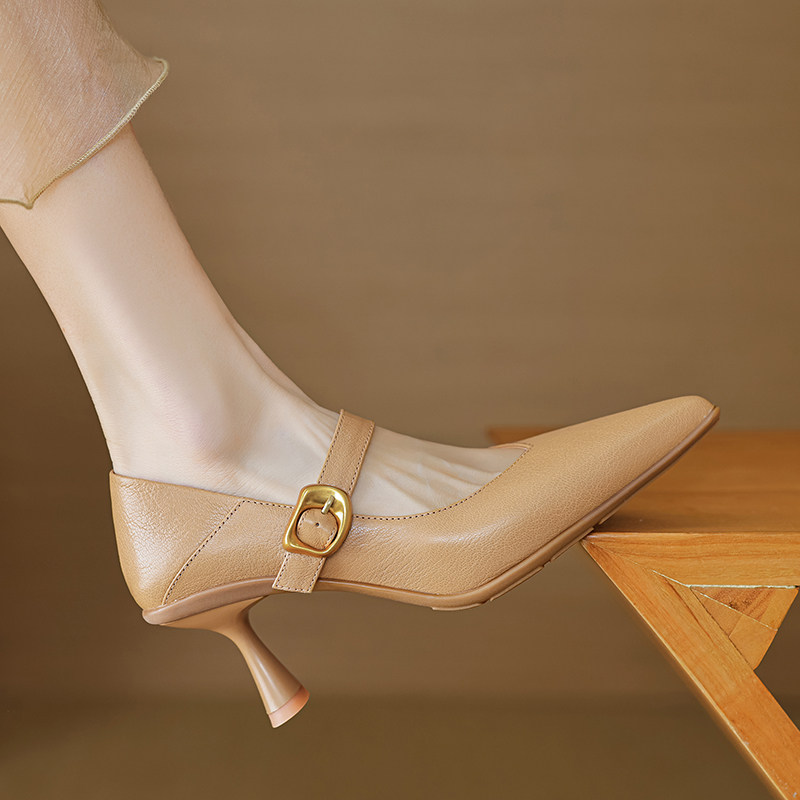 Демисезонные универсальные туфли на высоком каблуке с ремешком с низким вырезом, из натуральной кожи, тренд сезона