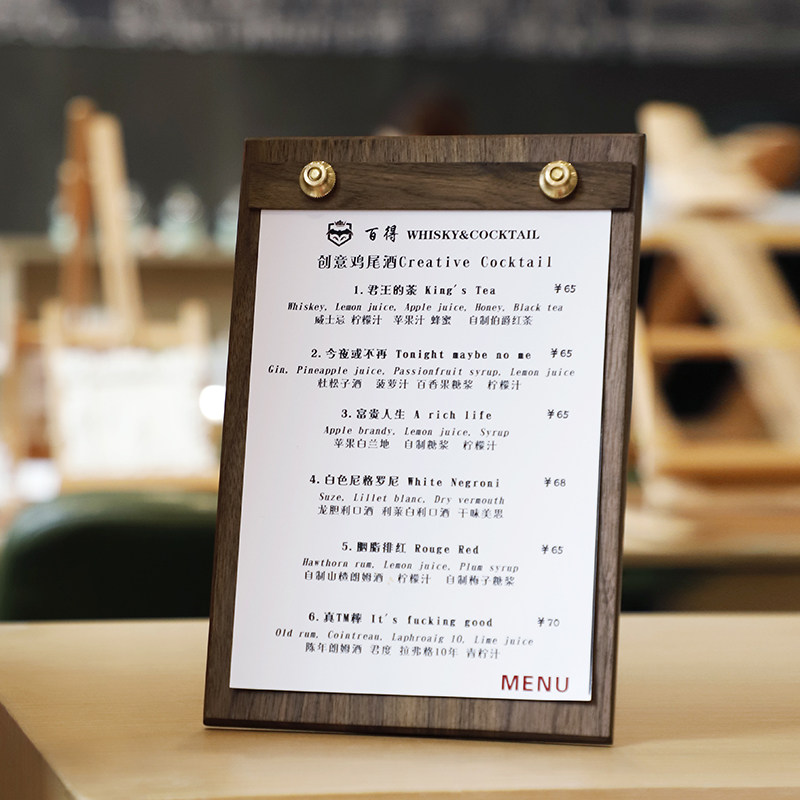 Меню зажимать на кофейнях на рабочем столе на рабочем столе на рабочем столе на рабочем столе -Стиль A4 Padding Restaurant Wooden Bill Clip