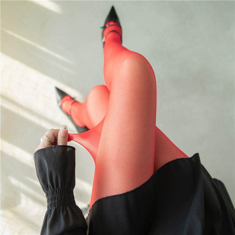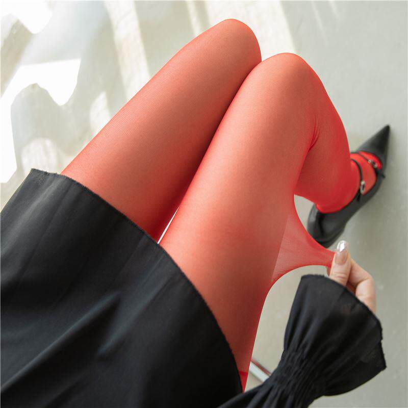 Ультратонкие красные сексуальные прозрачные демисезонные ретро колготки, матовый бархатный базовый лебедь