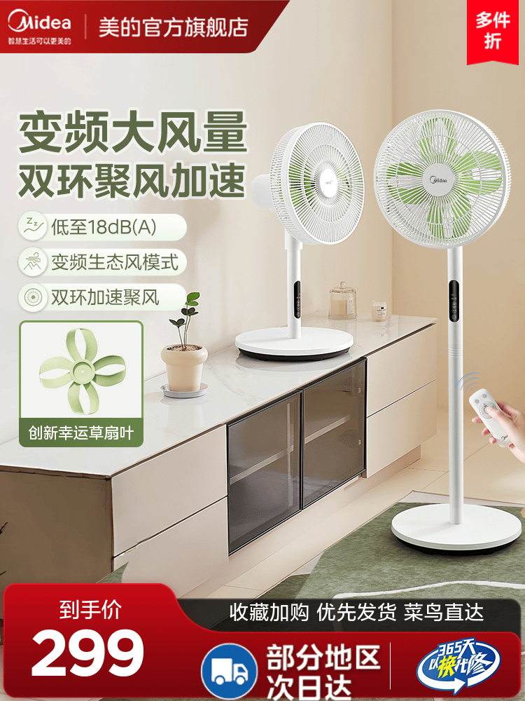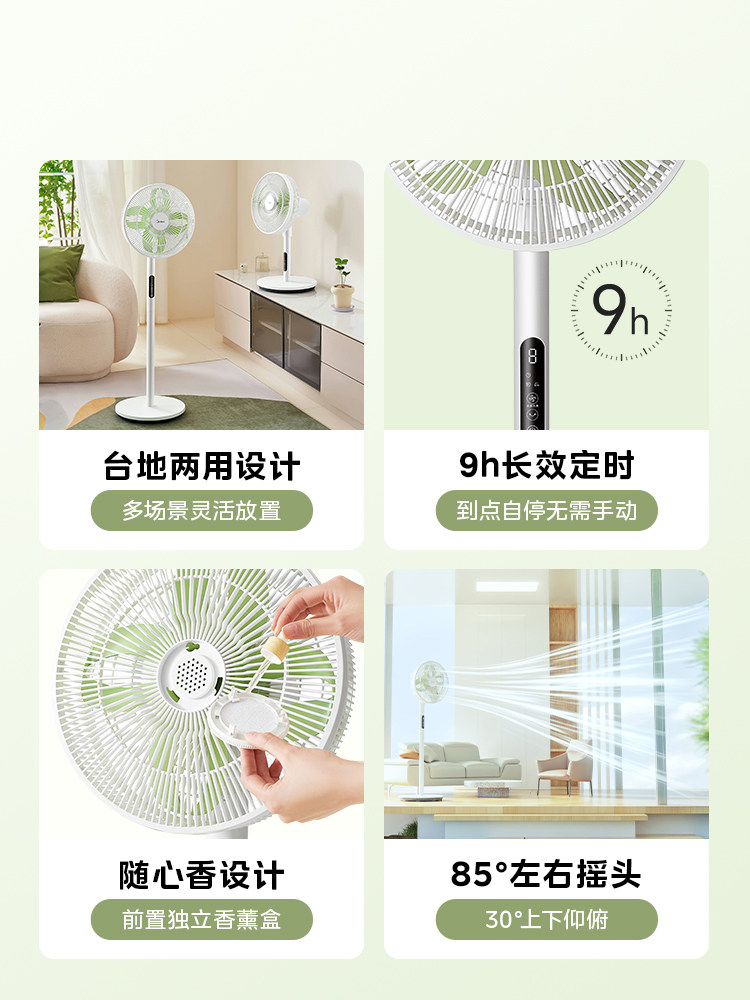 Midea Floor Fan Fean Тихий электрический вентилятор 2024 Новый большой ветер качает головой и стойки, двух -домашняя спальня общежитие спальни