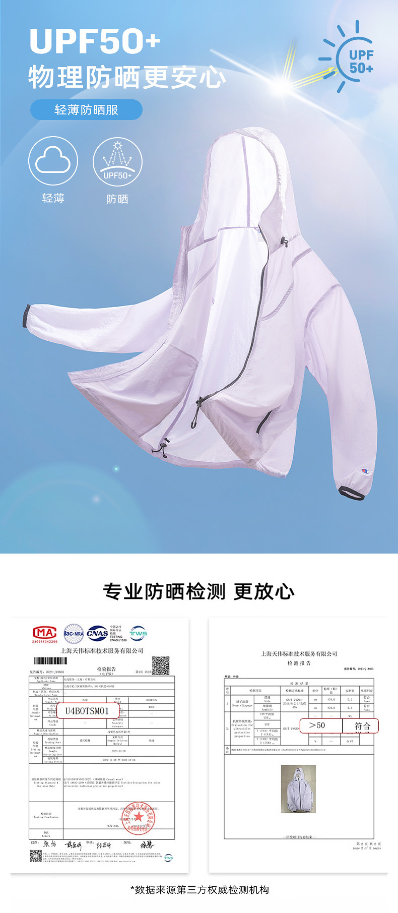 [UPF50+] Champion Champion Пара солнцезащитная куртка для мужчин и женщин, осень 2024, легкая защита от ультрафиолета