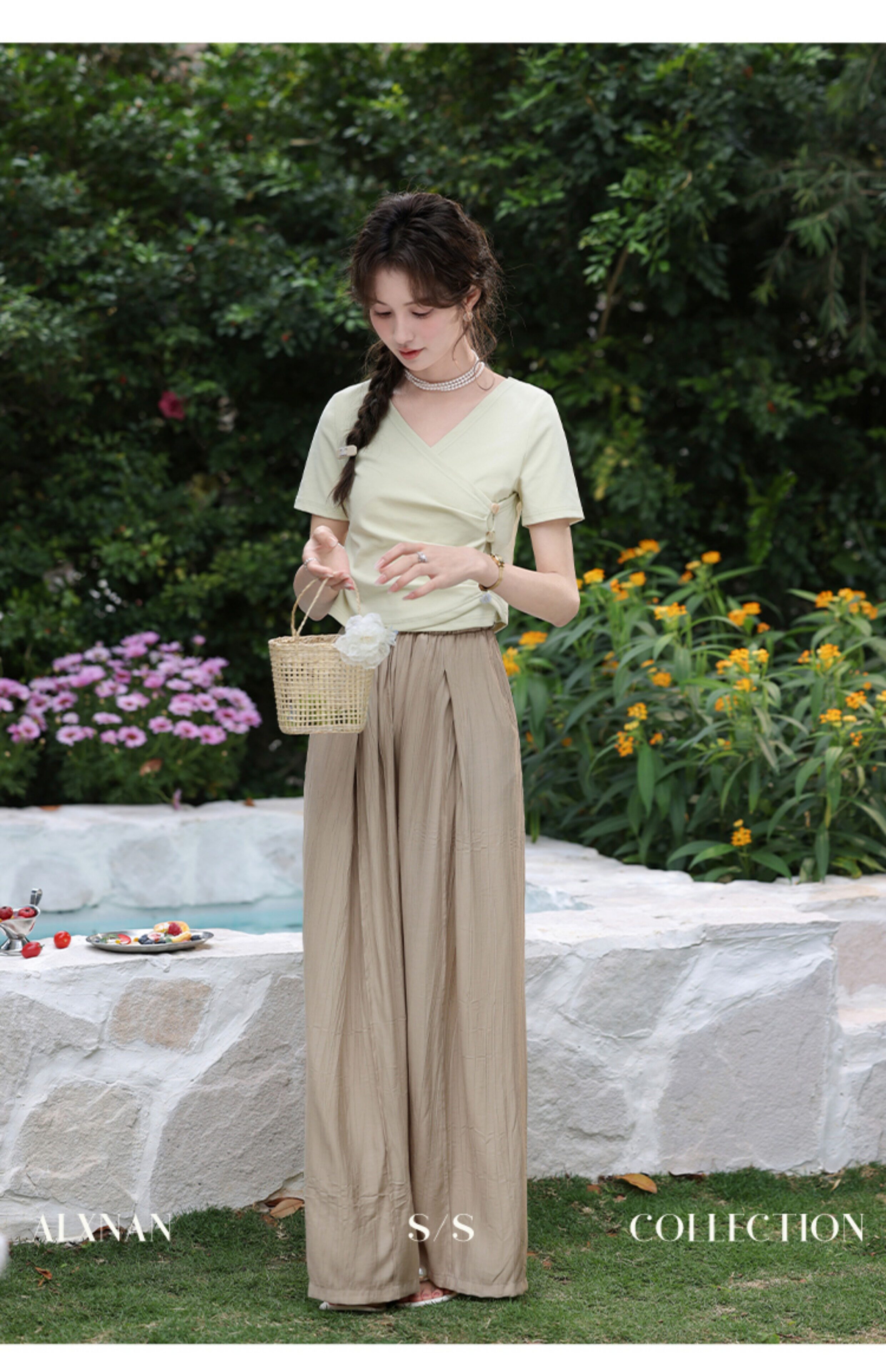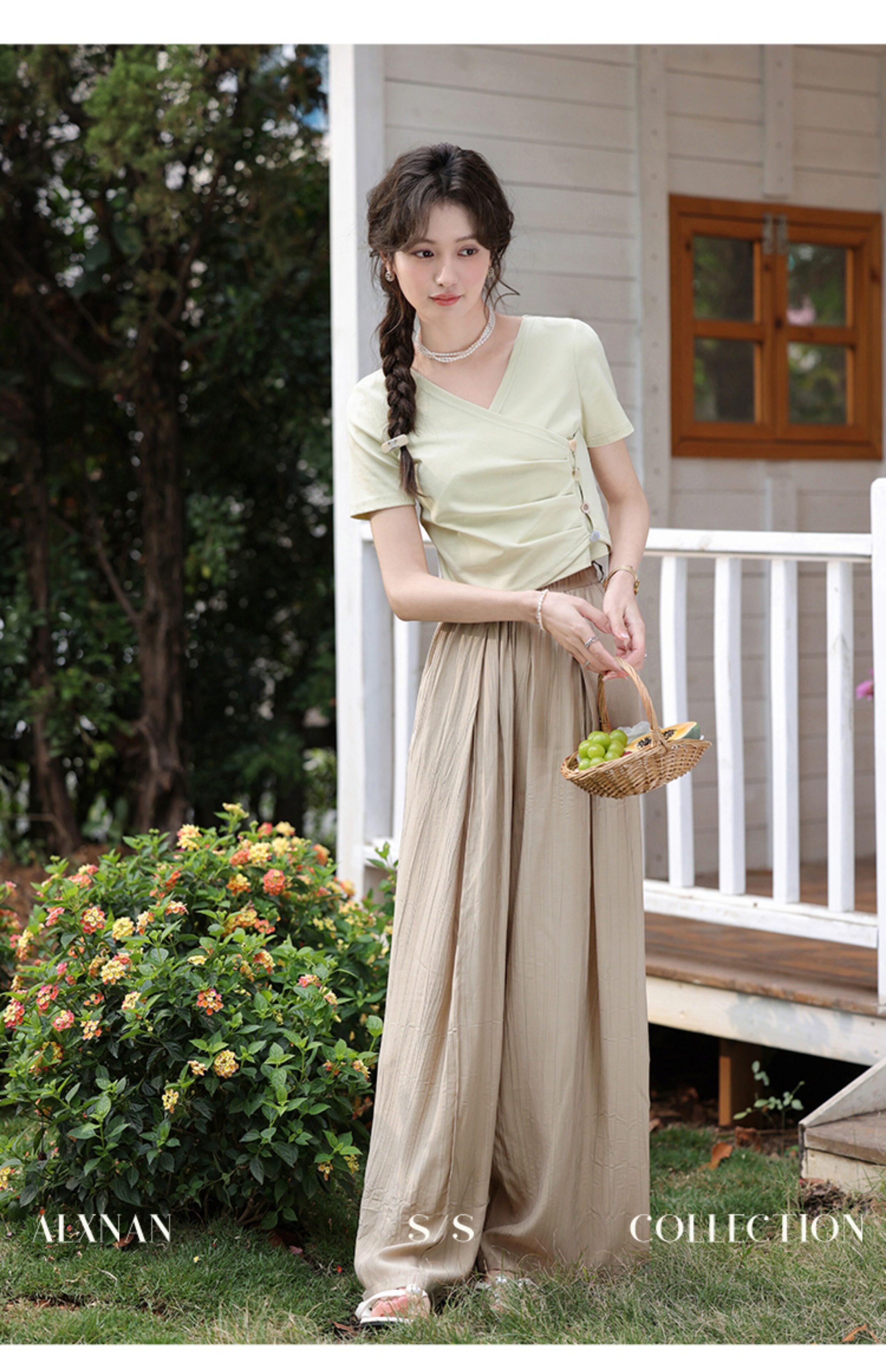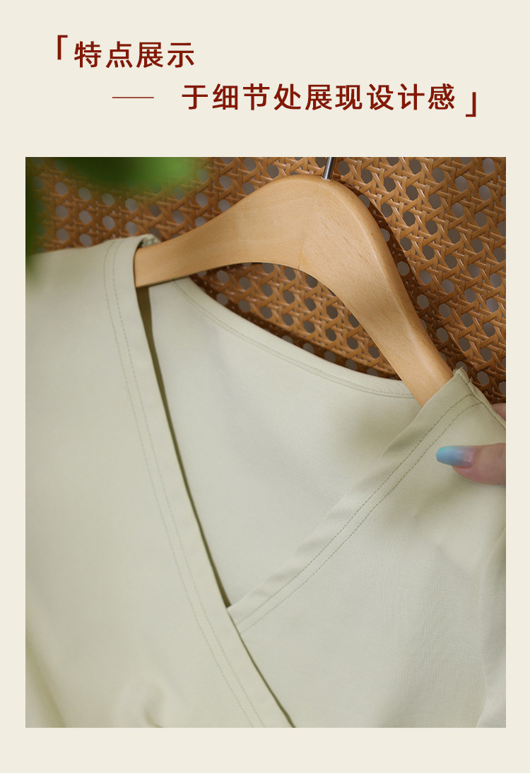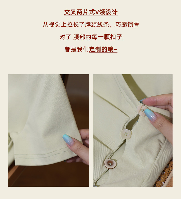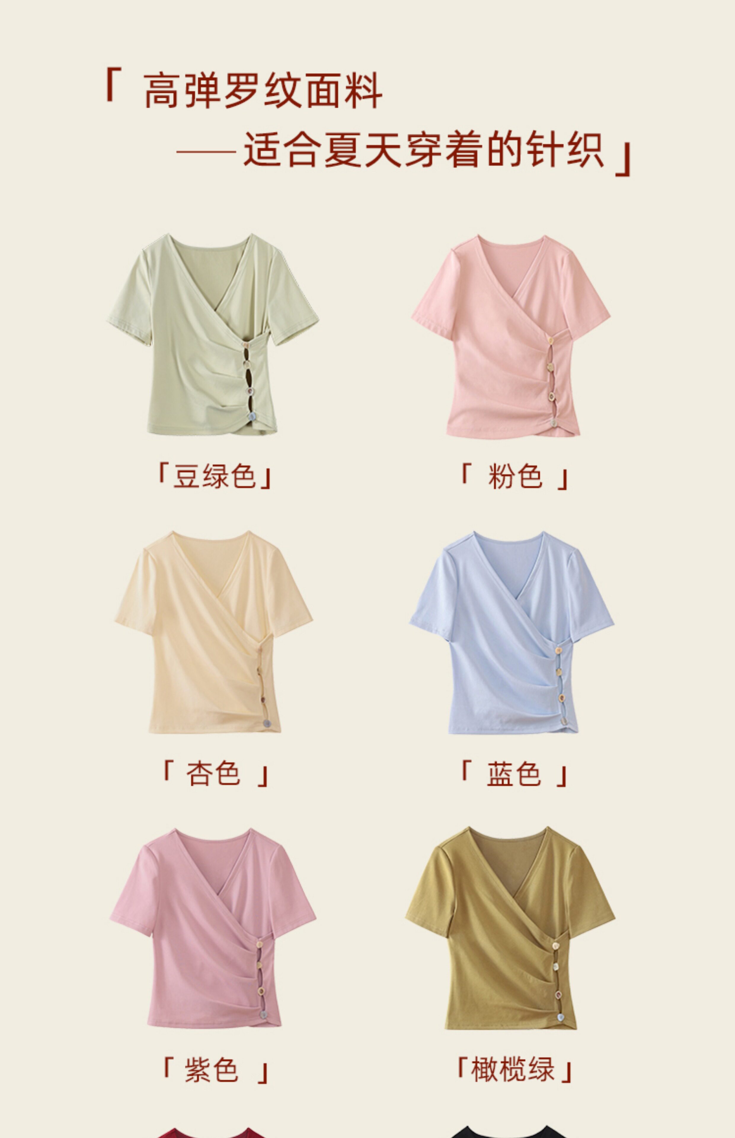 鹿向南 Короткая летняя футболка с коротким рукавом, V-образный вырез