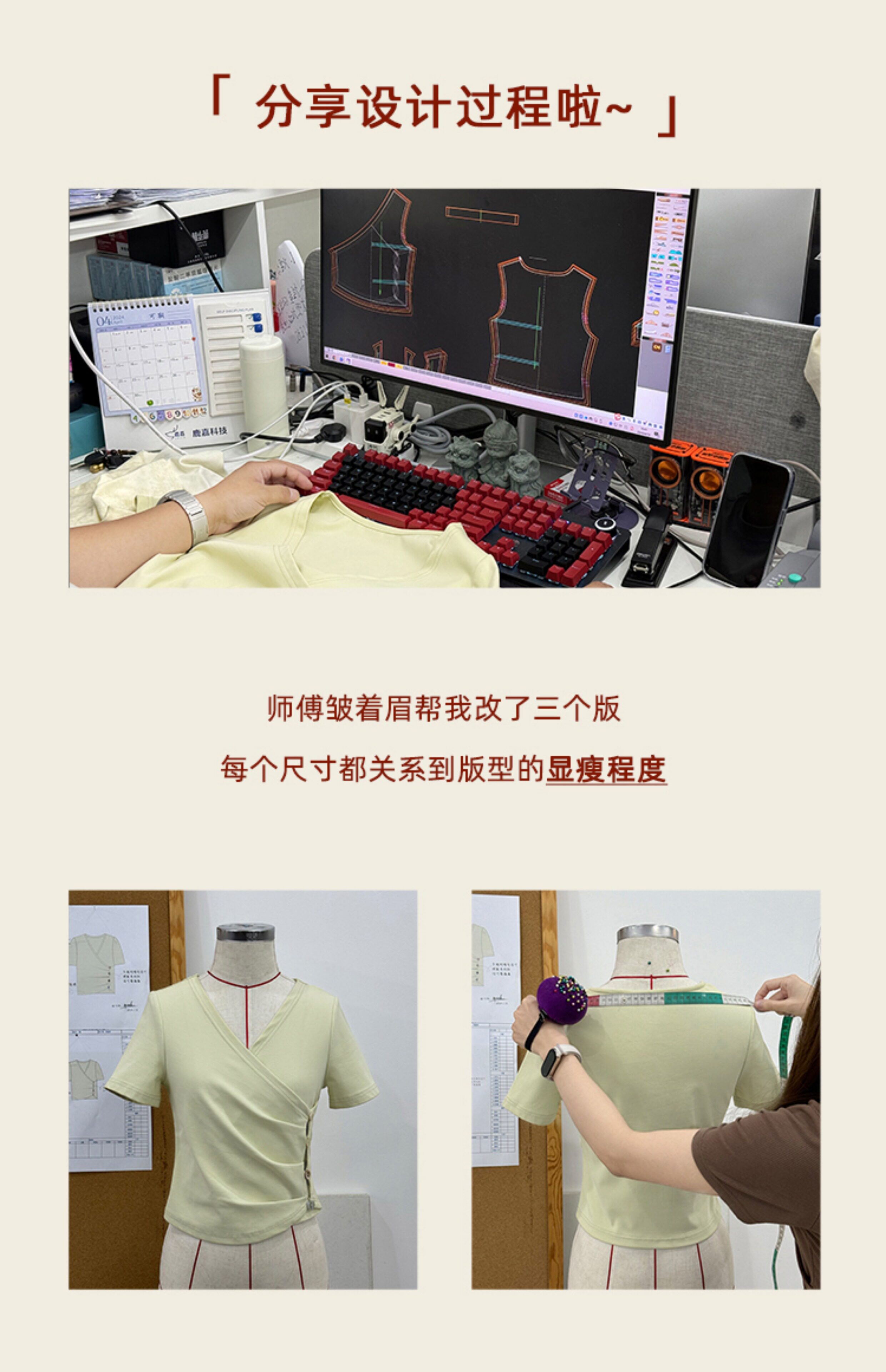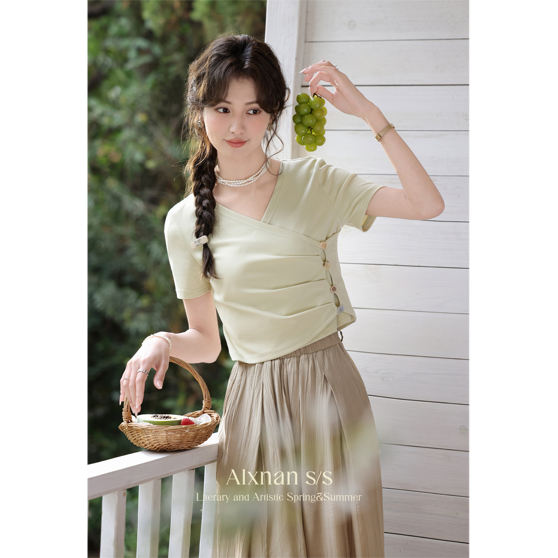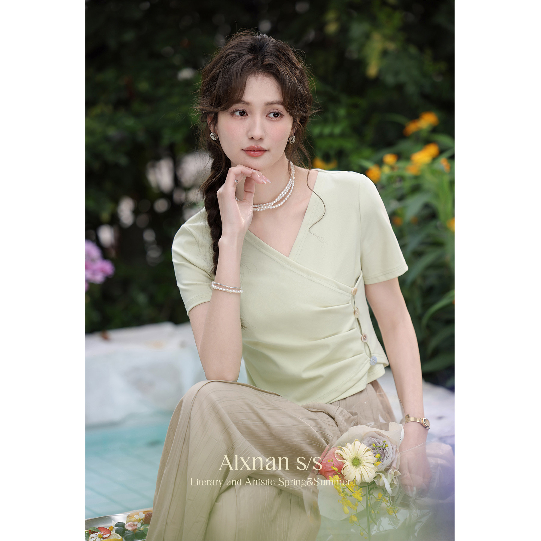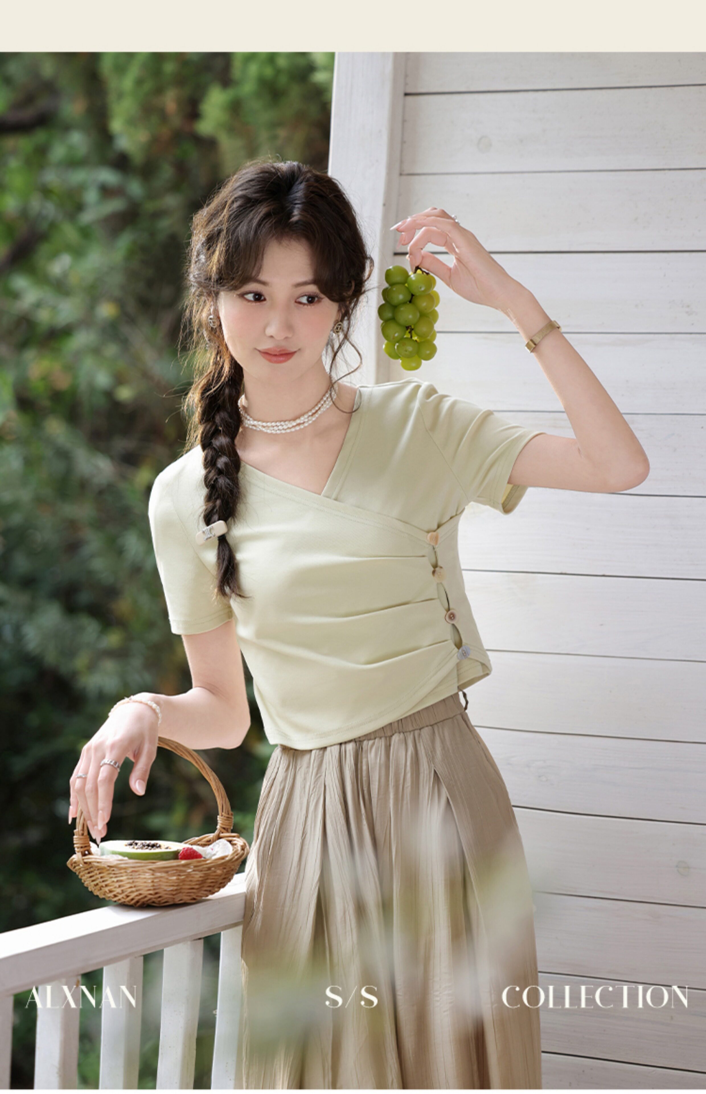 鹿向南 Короткая летняя футболка с коротким рукавом, V-образный вырез