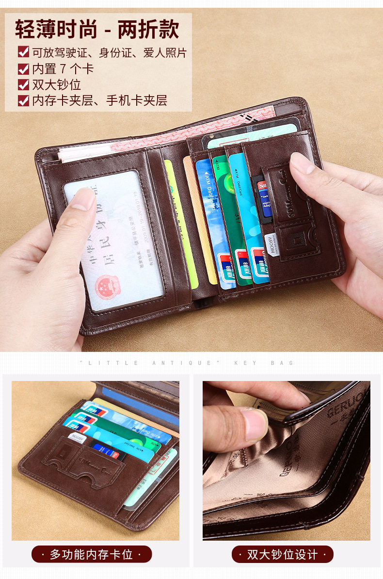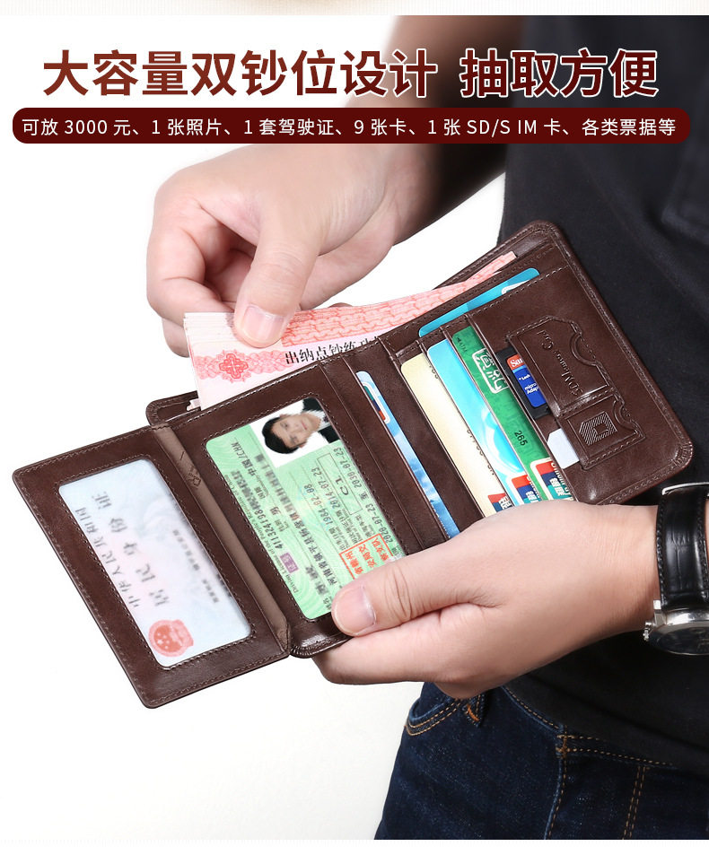 Бумажник, короткий кожаный ультратонкий кошелек для водительских прав, из натуральной кожи