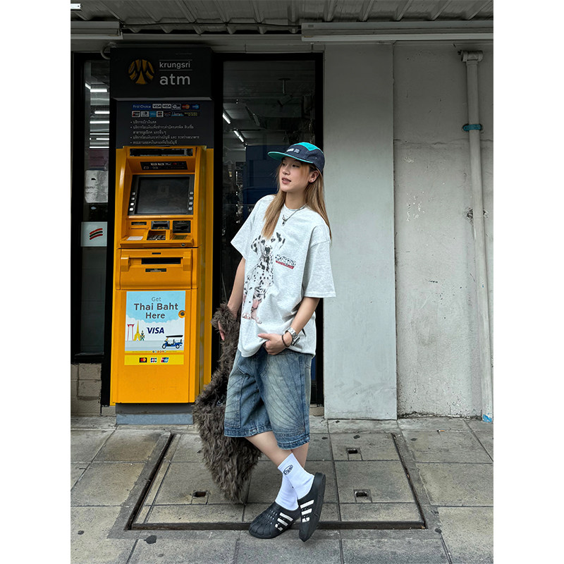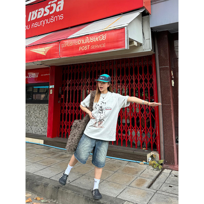 Оригинальная ретро футболка с коротким рукавом, в американском стиле, свободный крой