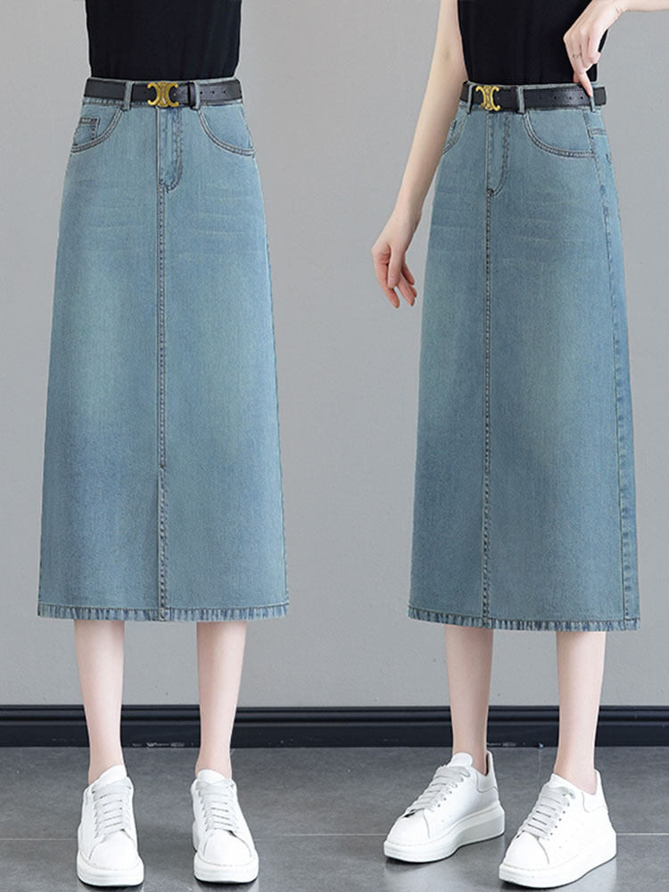 Летняя длинная джинсовая юбка для отдыха, средней длины, с акцентом на бедрах