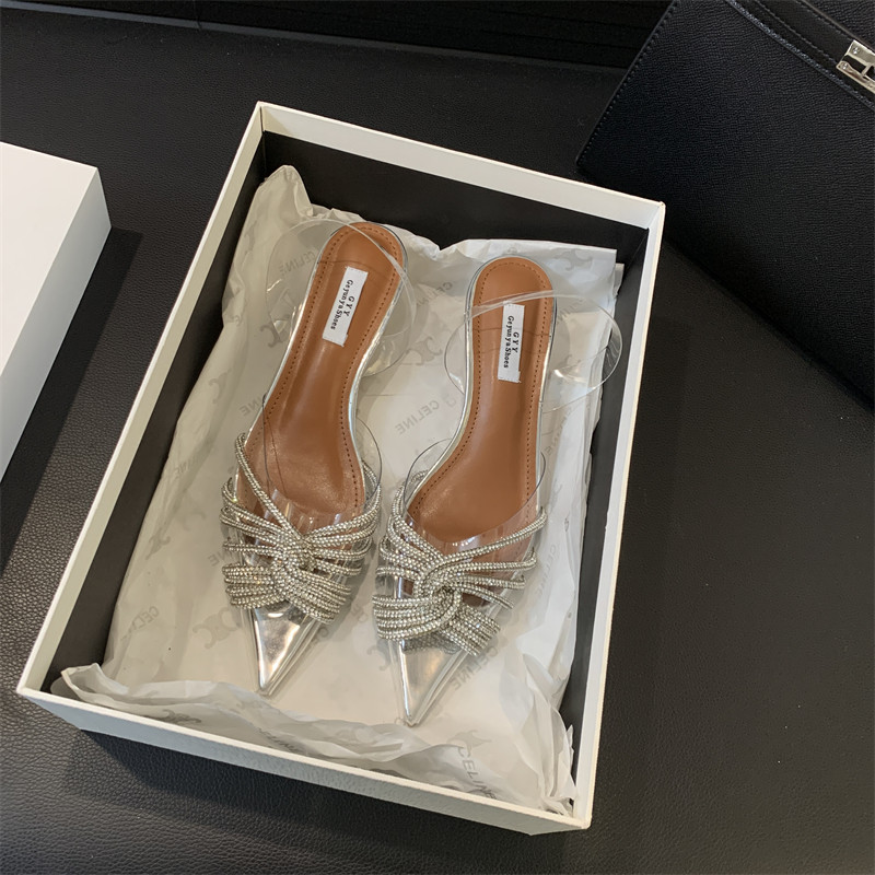 Сандалии страза для женщин 2025 Новый интернет -знаменитый прозрачный хрустальный сказочный стиль толстые пятки.
