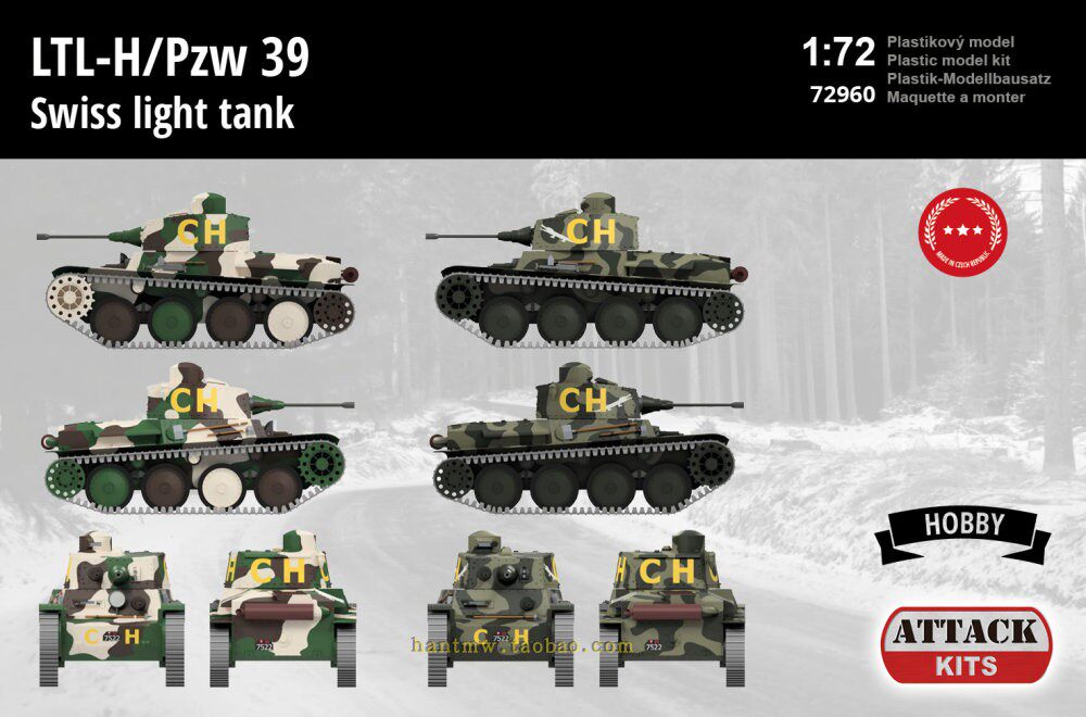ATT-72960 Swiss LTL-H/PZW 39 Light Tank 1/72 Модель пластической сборки