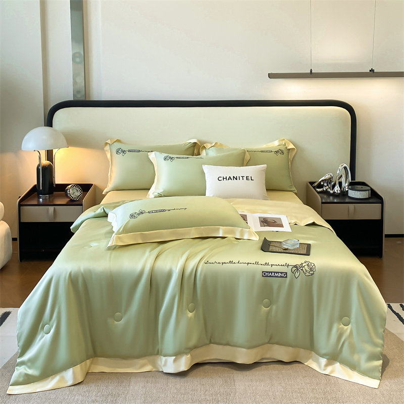 Шелковое летнее прохладное одеяло, летнее одеяло, шелковистый комплект, 4 предмета