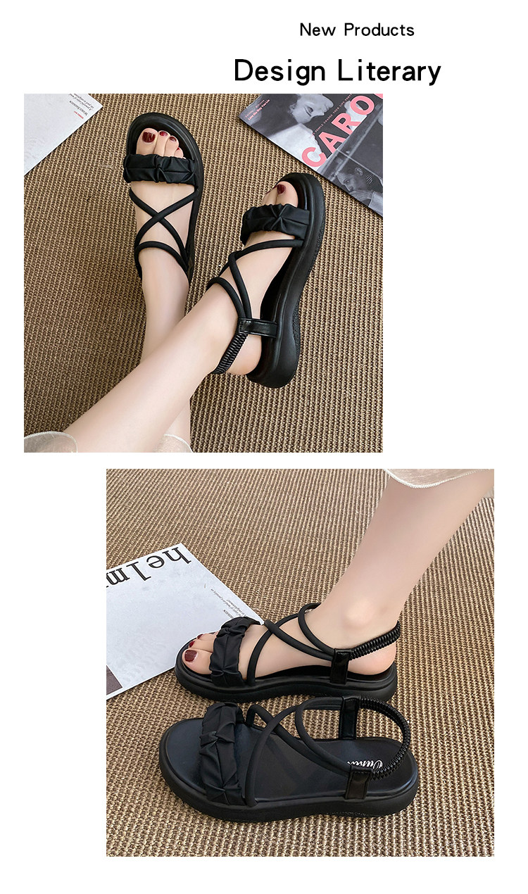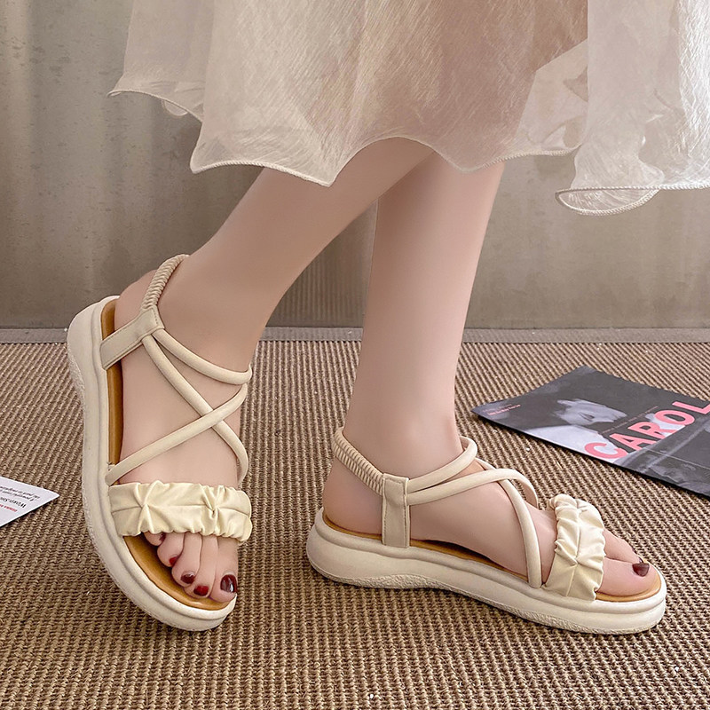 Летние сандалии, универсальная модная обувь на платформе, французский стиль, 2024 года, мягкая подошва, против усталых ног