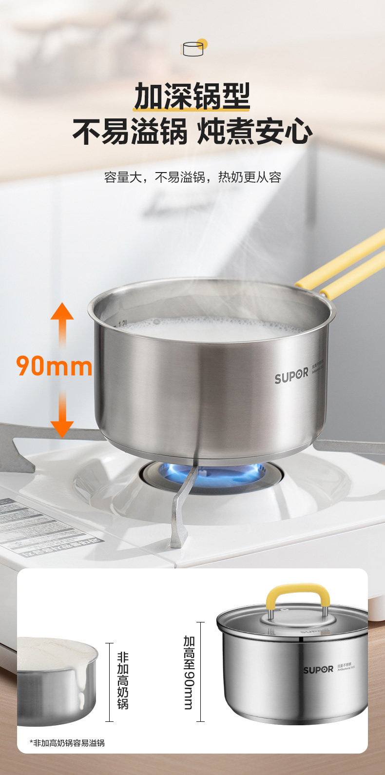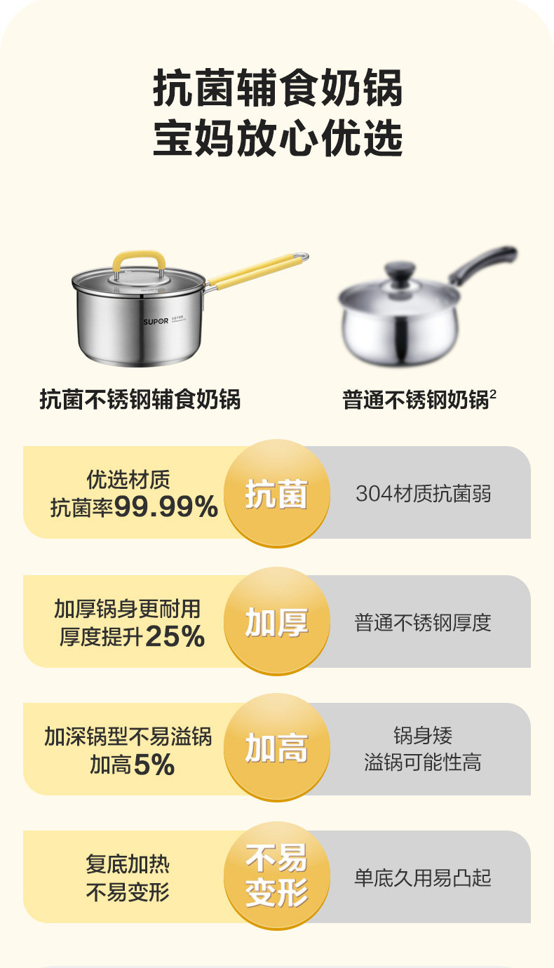 Супер-нержавеющая сталь молоко горшок с горшком с антибактериальным пищевым кастрюлем горшок для домохозяйки.