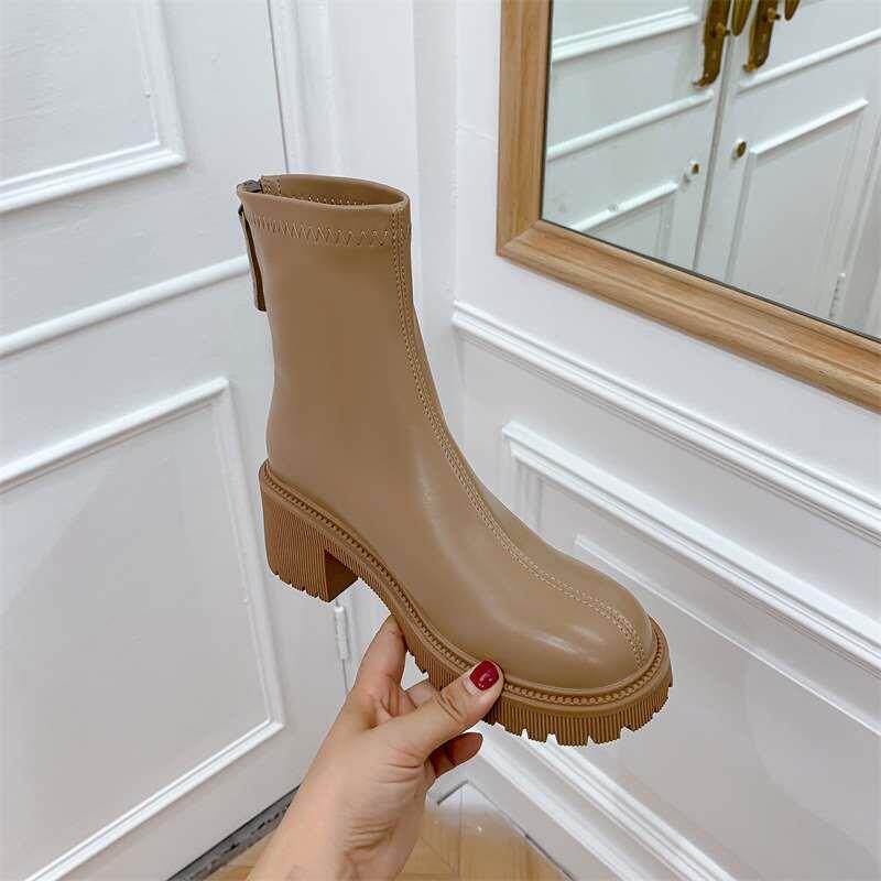Толстый каблук Мартин сапоги женщин Новый британский коричневый каблук