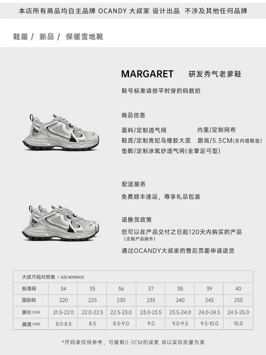 | Классификация цветов: | Серебристо-серая бутиковая версия R&D толщиной 5,5 см (запатентованная стелька во всю длину + запатентованная подошва R&D «Deep Dad»), Streamer Purple, 5,5 см, бутиковая версия R&D (запатентованная стелька во всю длину + запатентованная подошва R&D «Deep Dad»)., Бежевая бутиковая версия R&D толщиной 5,5 см (запатентованная стелька во всю длину + запатентованная подошва R&D «Deep Daddy») |