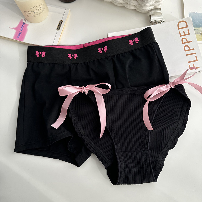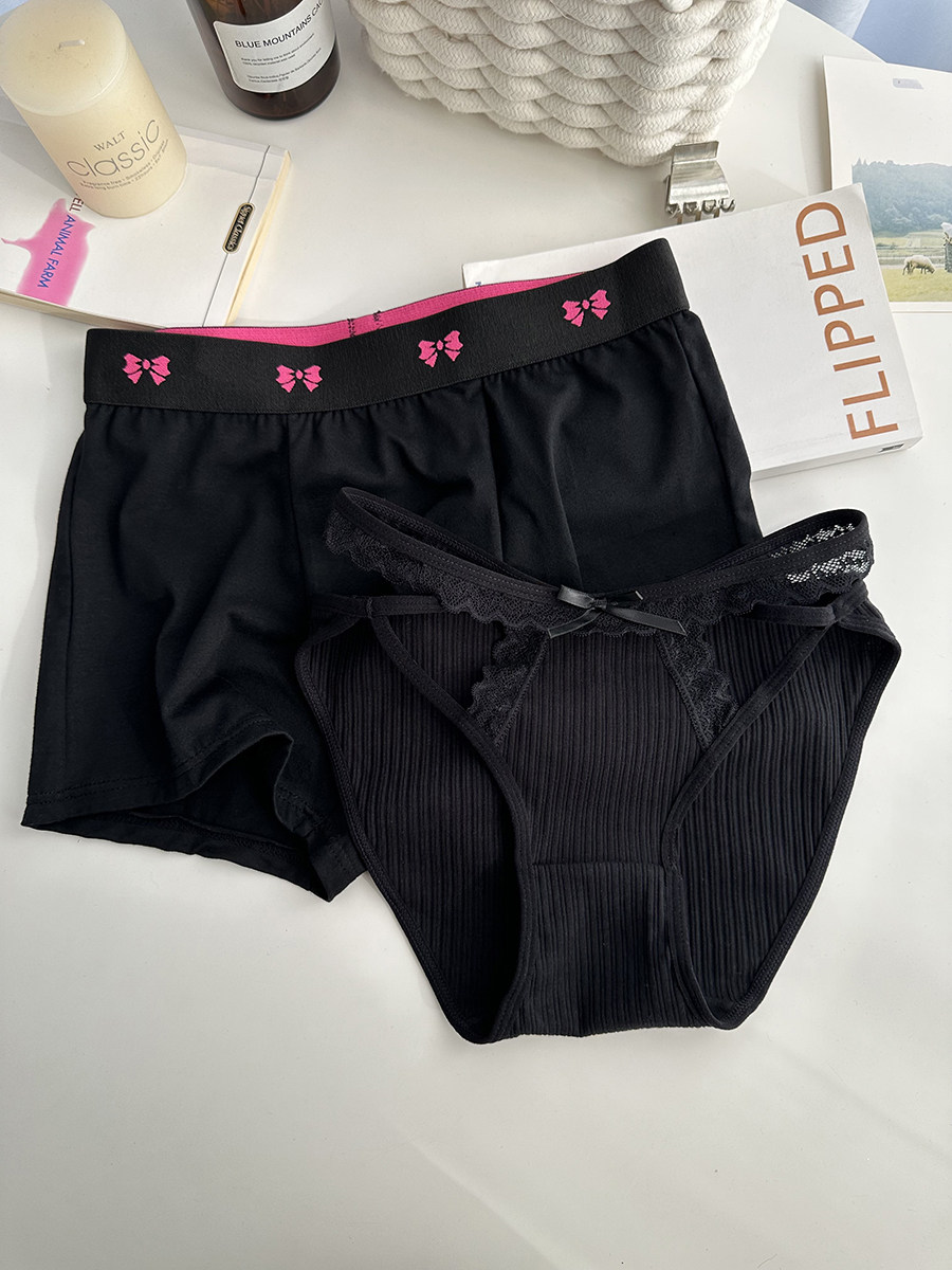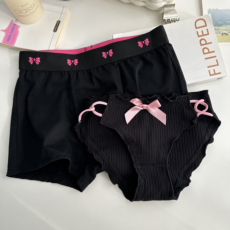 Сексуальное черное нижнее белье для влюбленных, хлопковые штаны подходит для мужчин и женщин для друга, средняя посадка