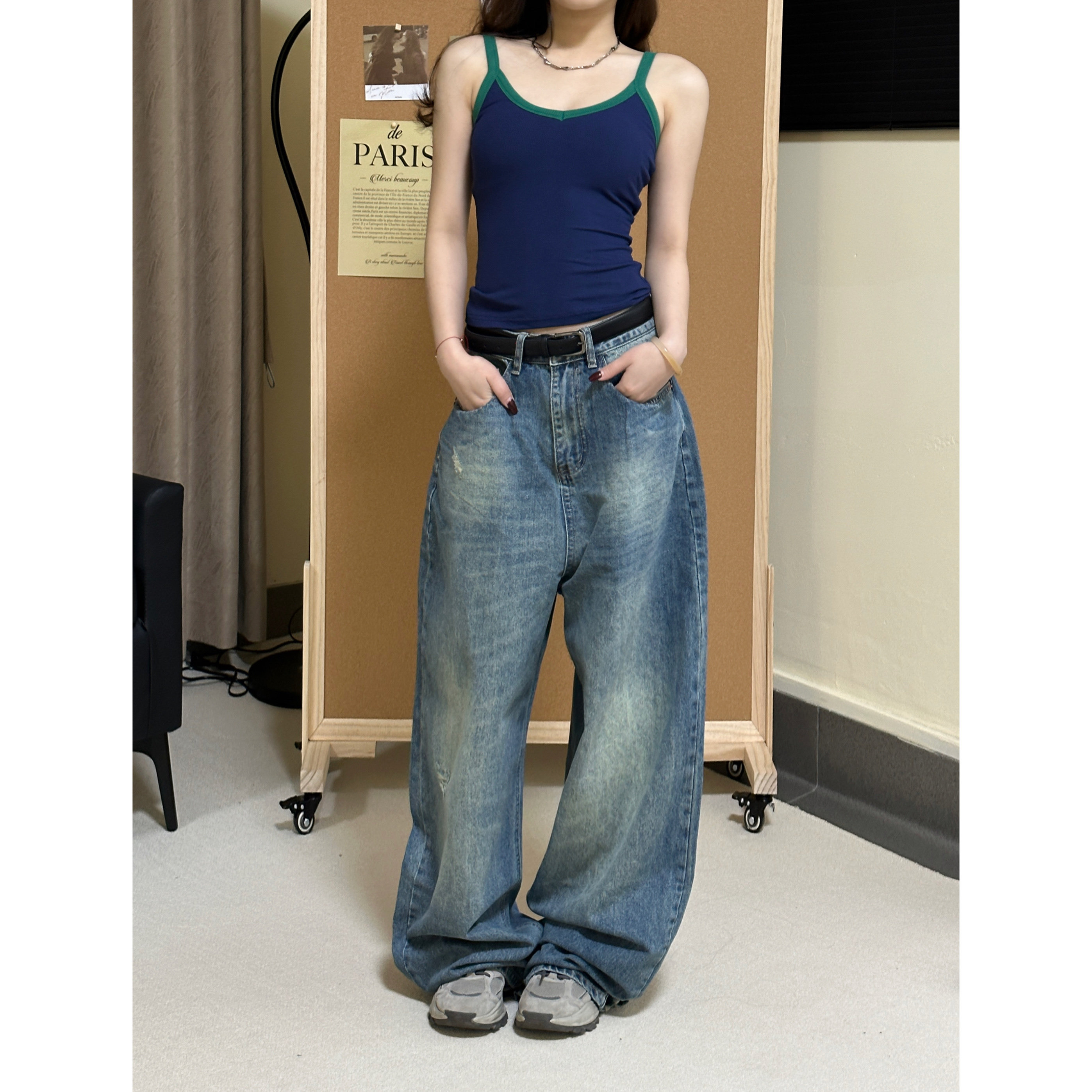 Ретро джинсы, штаны, в американском стиле, свободный крой, высокая талия