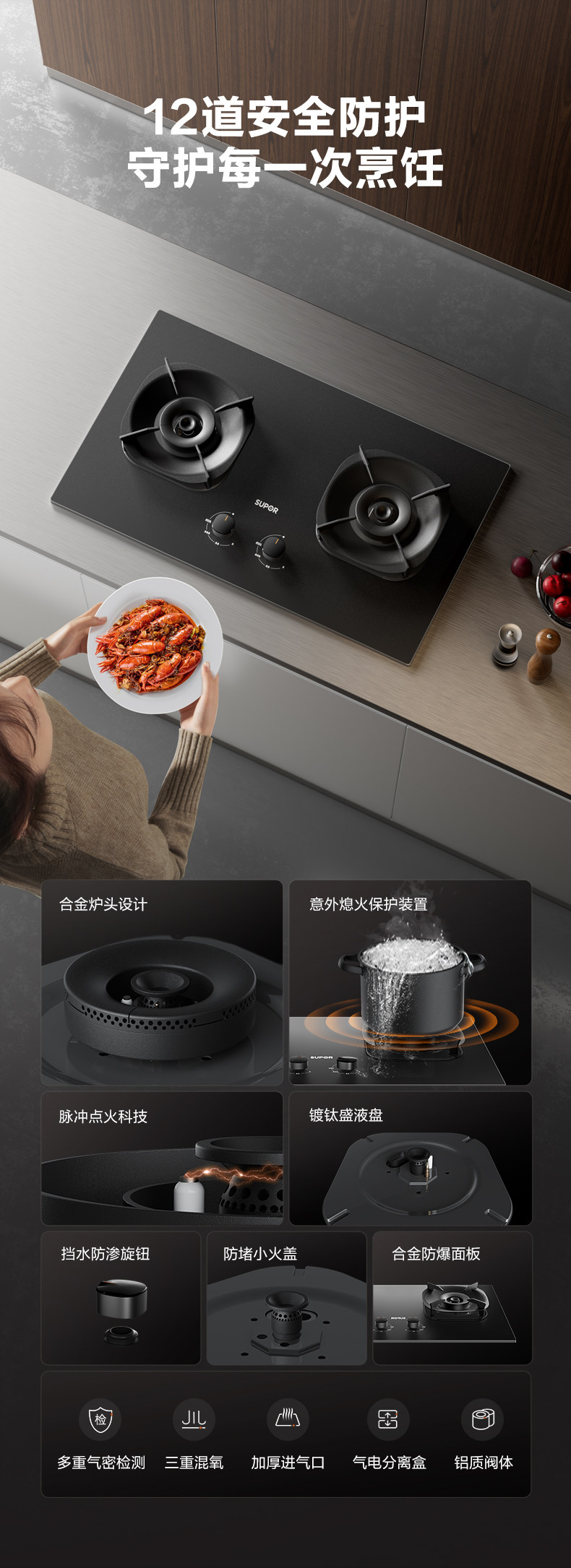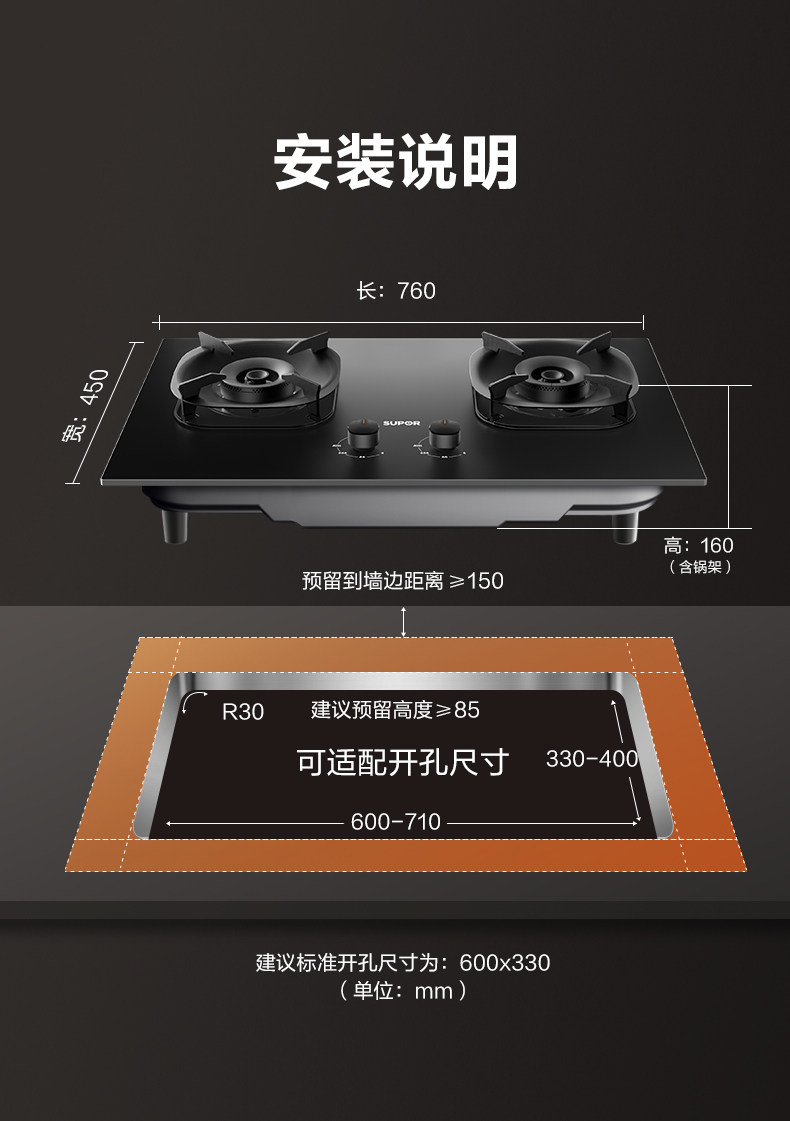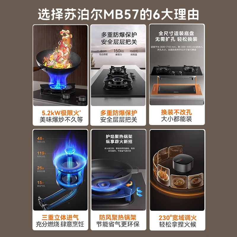 Supor MB57 Газовая газовая плита двойная плита домохозяйственная взрывоопасная таблица.