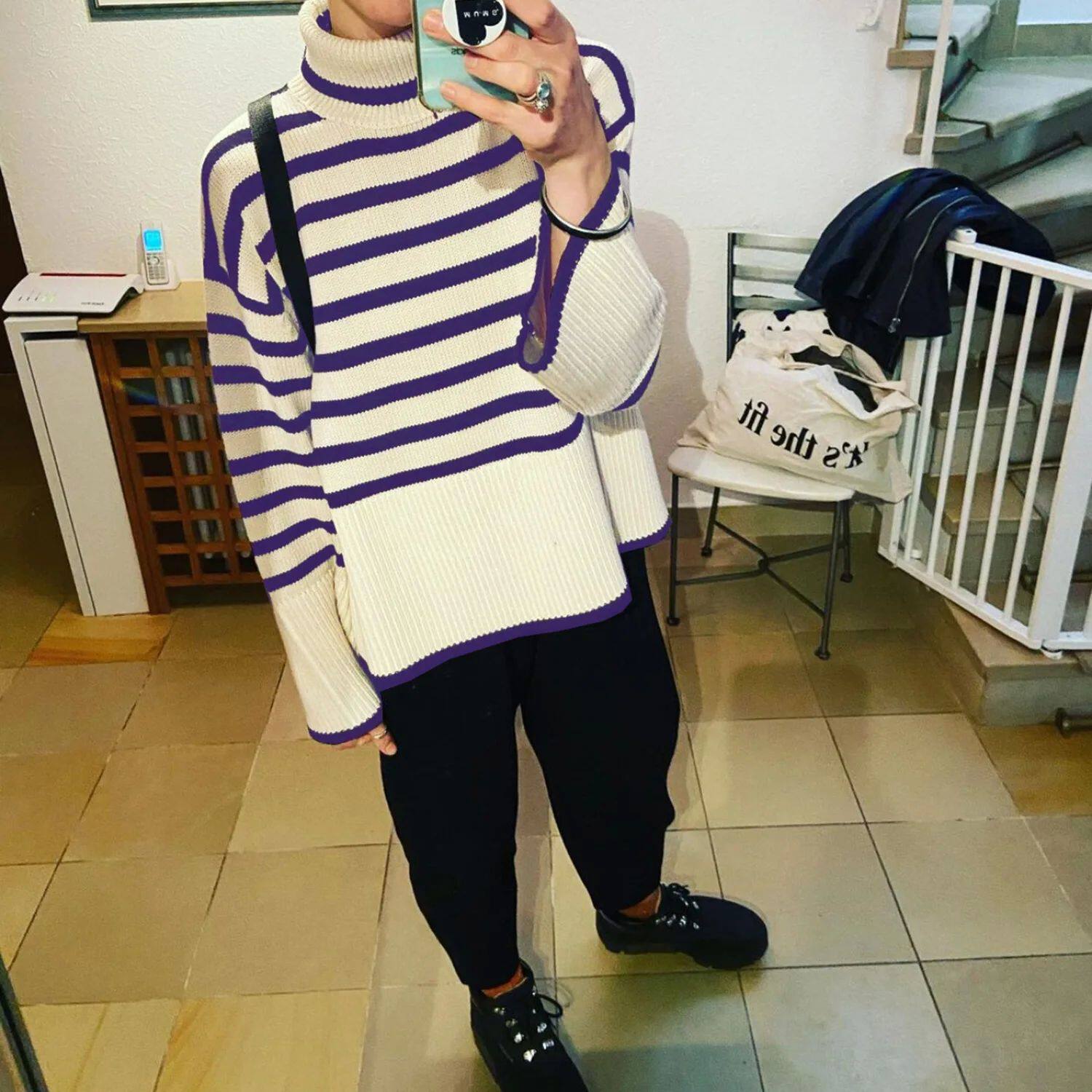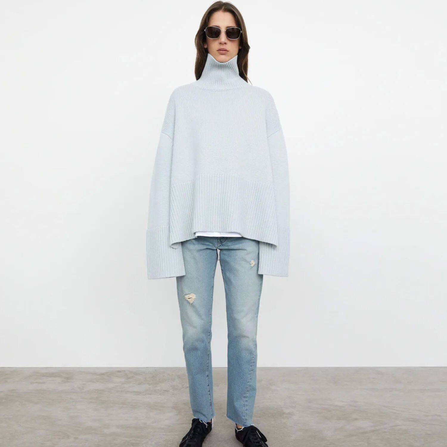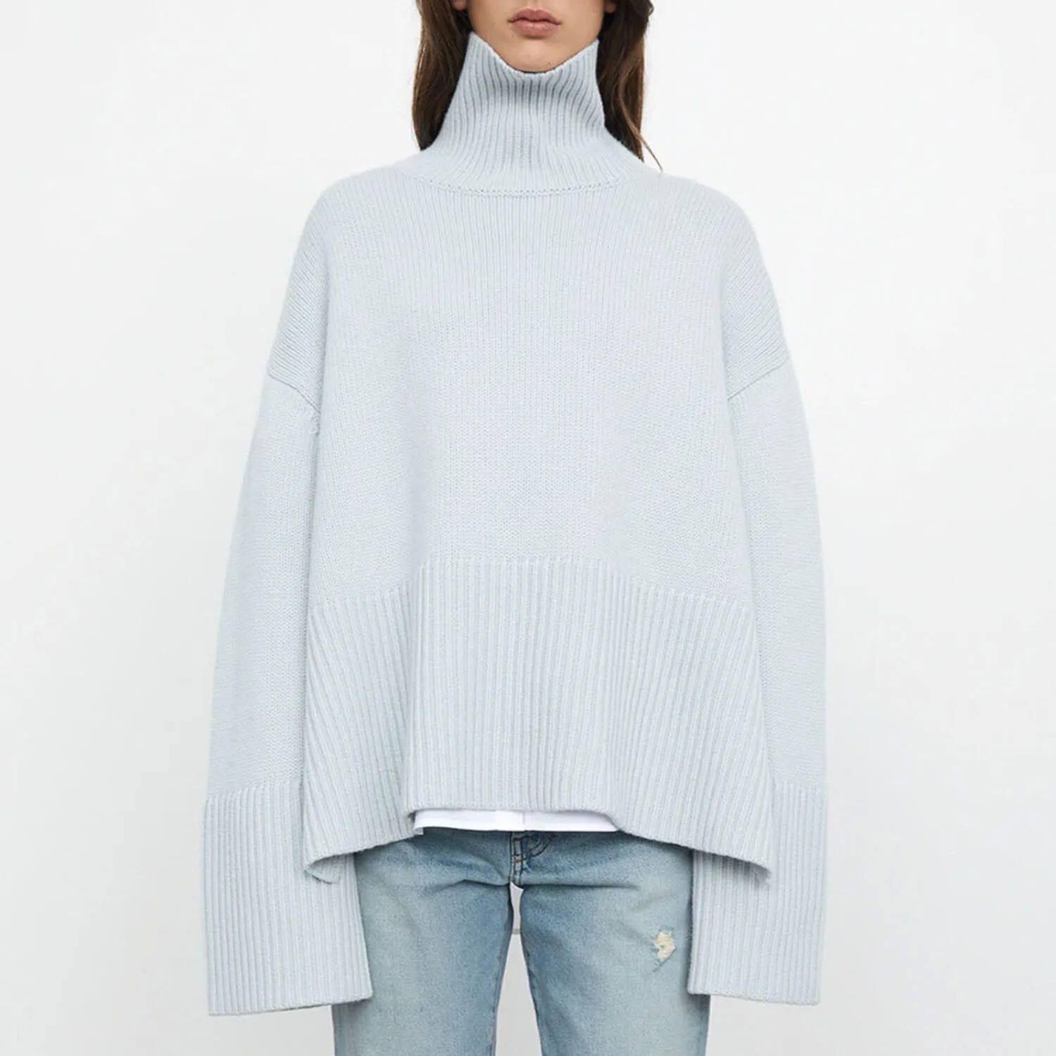 Tospy Winter Women's Long Roolves Driut Sweater TurtleLeneck S