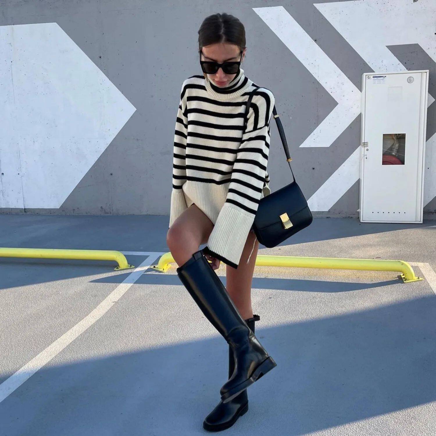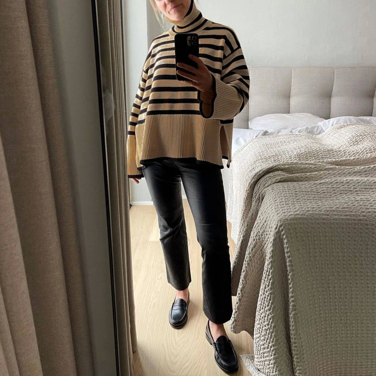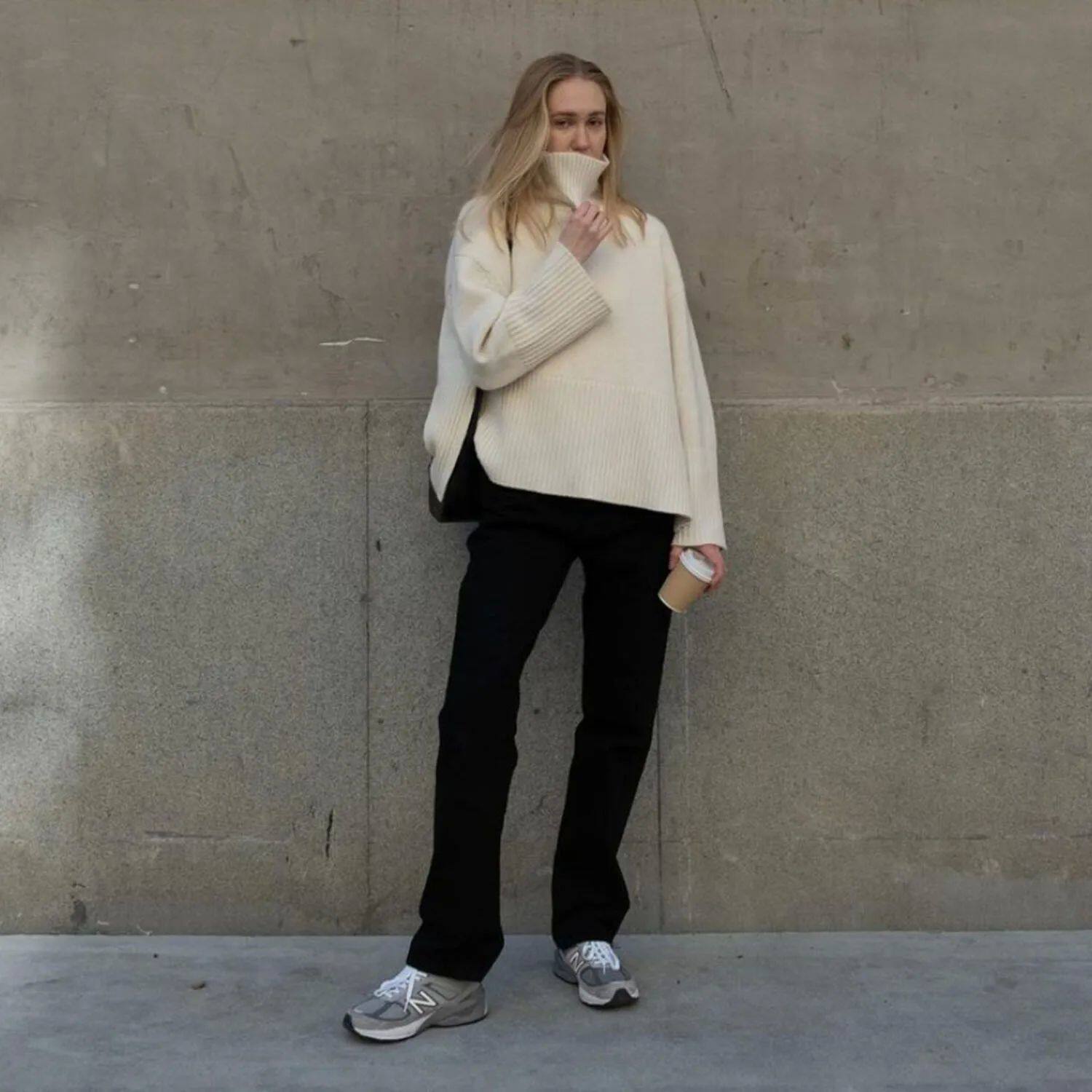 Tospy Winter Women's Long Roolves Driut Sweater TurtleLeneck S