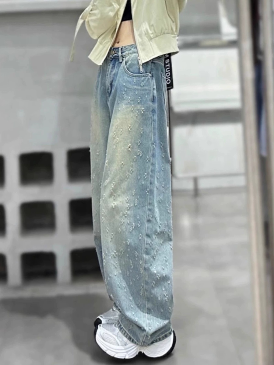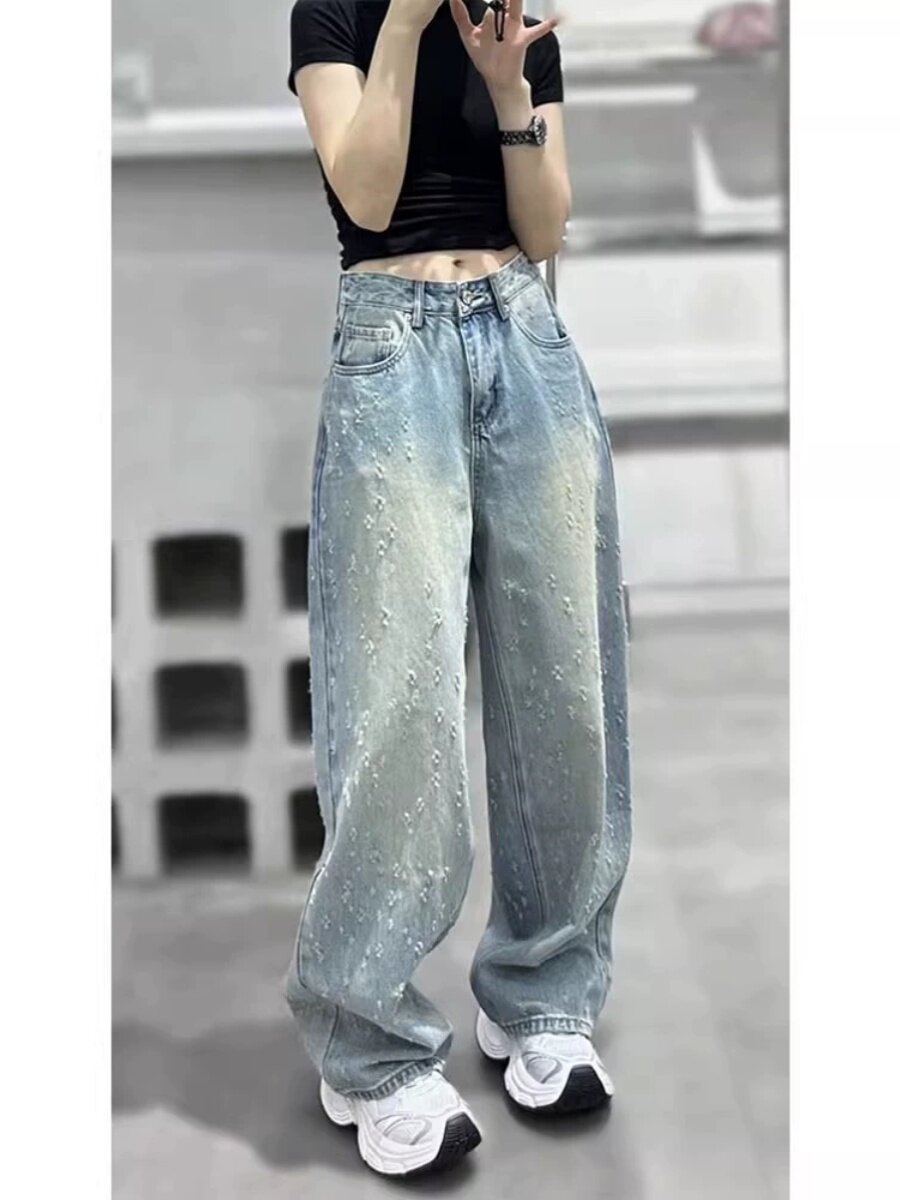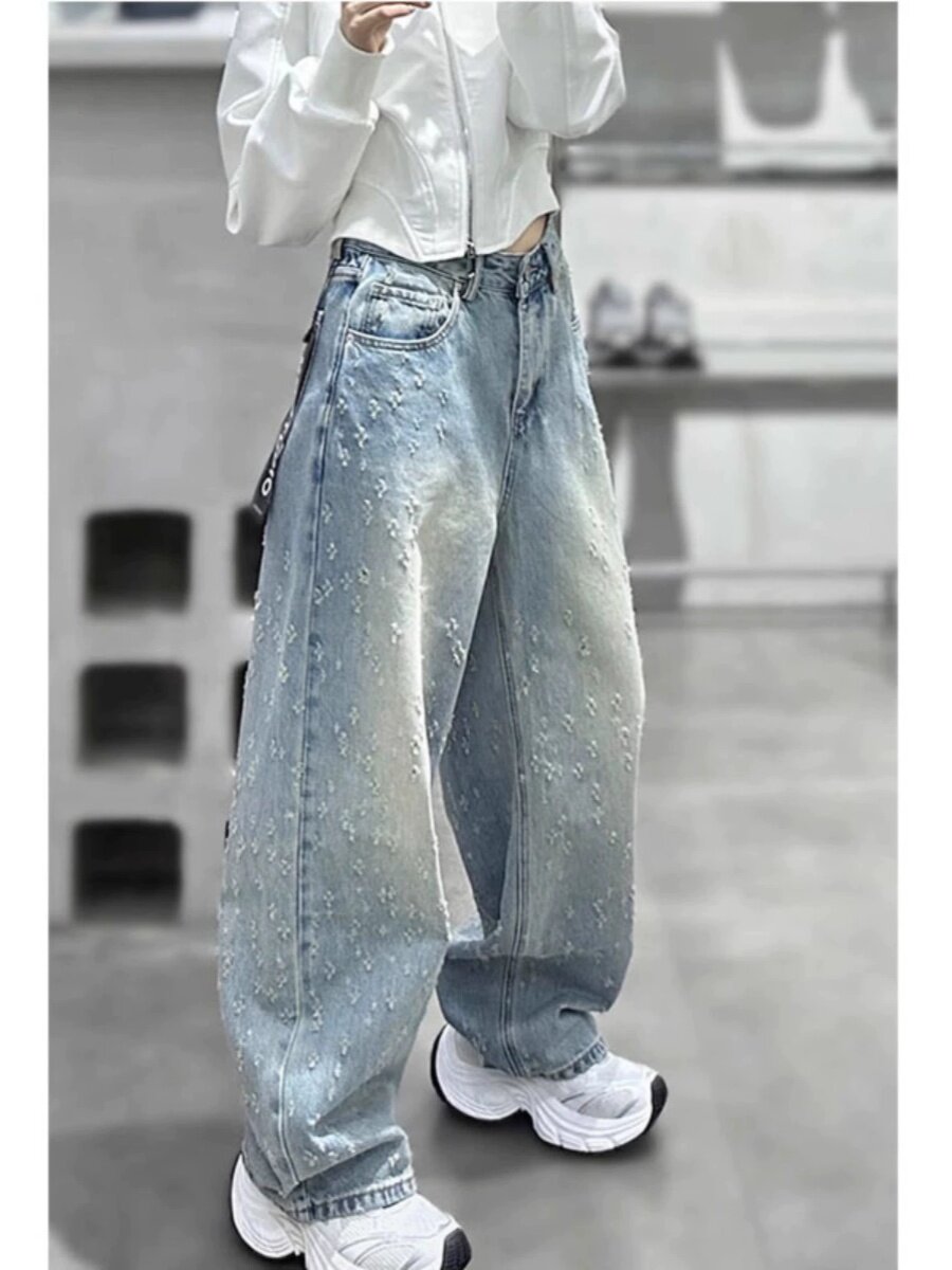 Синие трехмерные осенние приталенные джинсы, штаны для отдыха, оверсайз, подходит для подростков