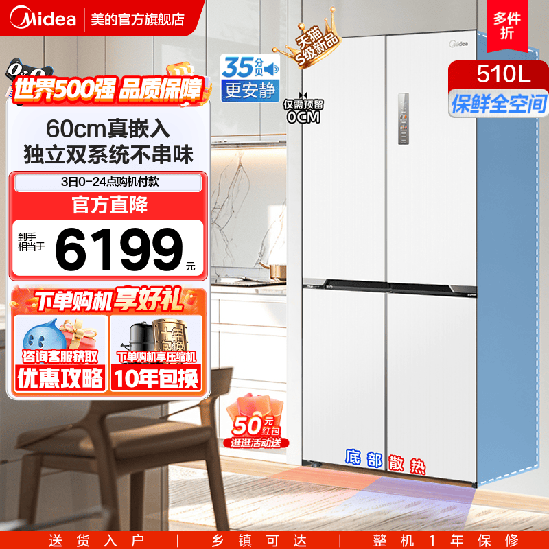 Midea Yun Duo M60cm Ultra -Thin 535 нулевой встроенный холодильник с двойной системой Домохозяйство.