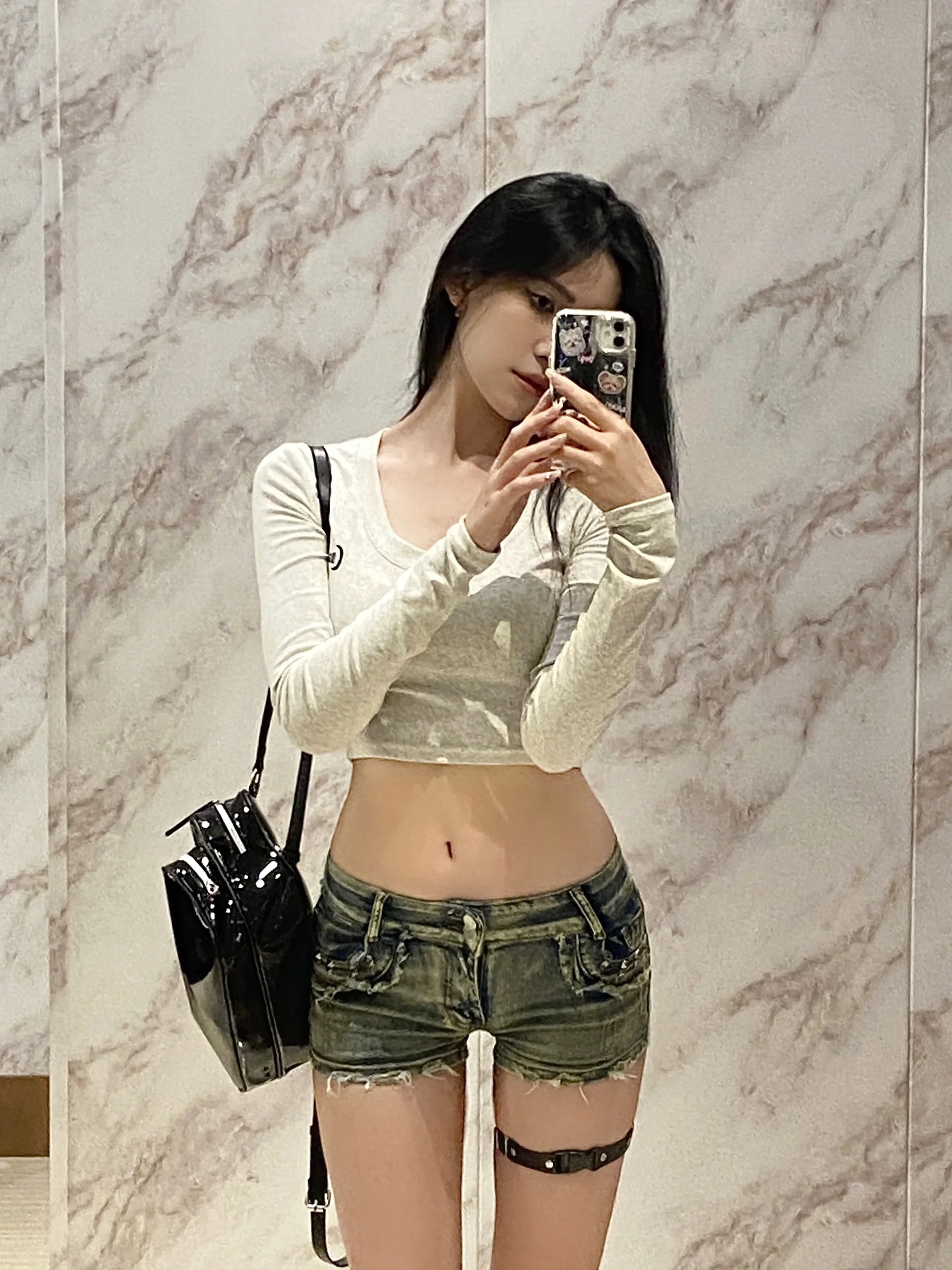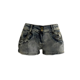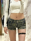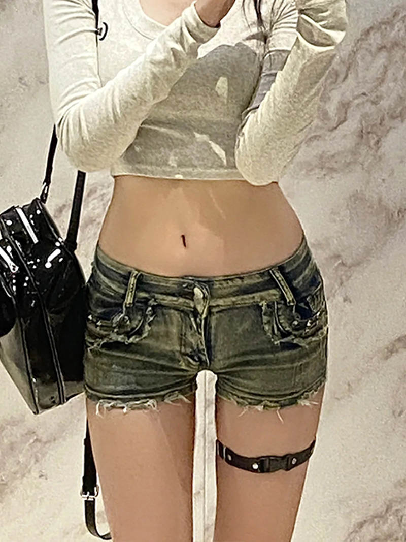 Джинсовая юбка, шорты, штаны, поясная сумка, в обтяжку, в американском стиле, с акцентом на бедрах