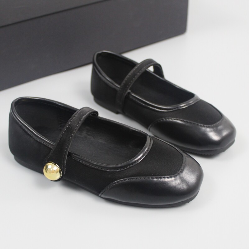 Кожаная обувь для девочек, новинка 2024 года, весенне-осенняя обувь принцессы на мягкой подошве, модная и универсальная черная детская повседневная обувь на липучке