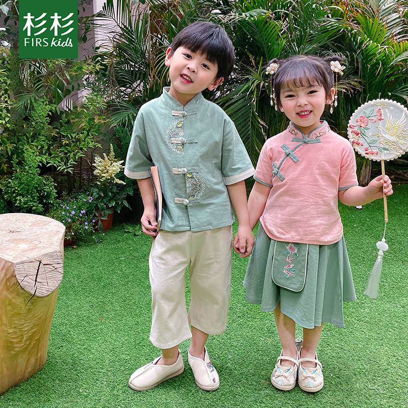 Детское летнее ханьфу для мальчиков, детский комплект, костюм, из хлопка и льна, китайский стиль