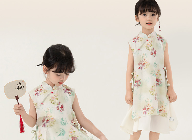 Ханьфу, платье для девочек, юбка на девочку, летняя одежда, ципао, китайский стиль, в цветочек