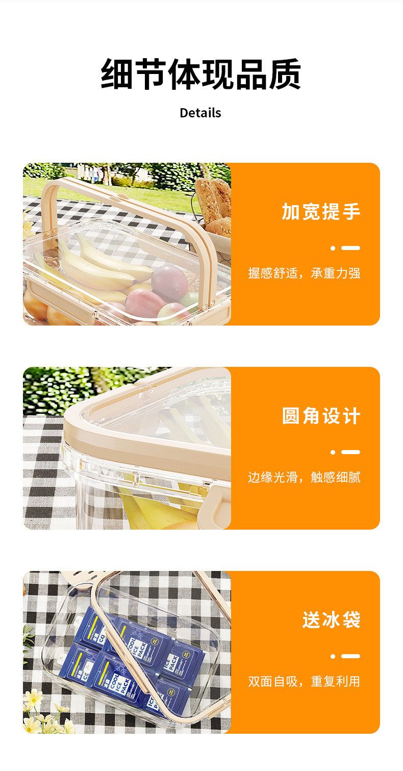 滕玄 Портативная портативная коробка для хранения свежих продуктов на открытом воздухе, герметичная коробка для обеда с фруктами и пикником для весенней прогулки 1563