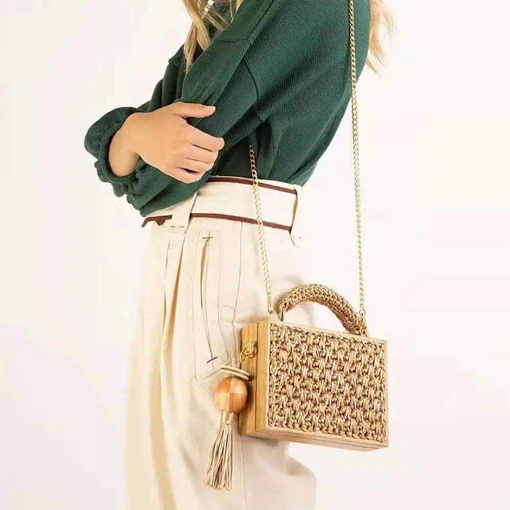 2024 Summer Beach Bamboo Tassel Straw Srate Woven Bag Cross-Tobdy S