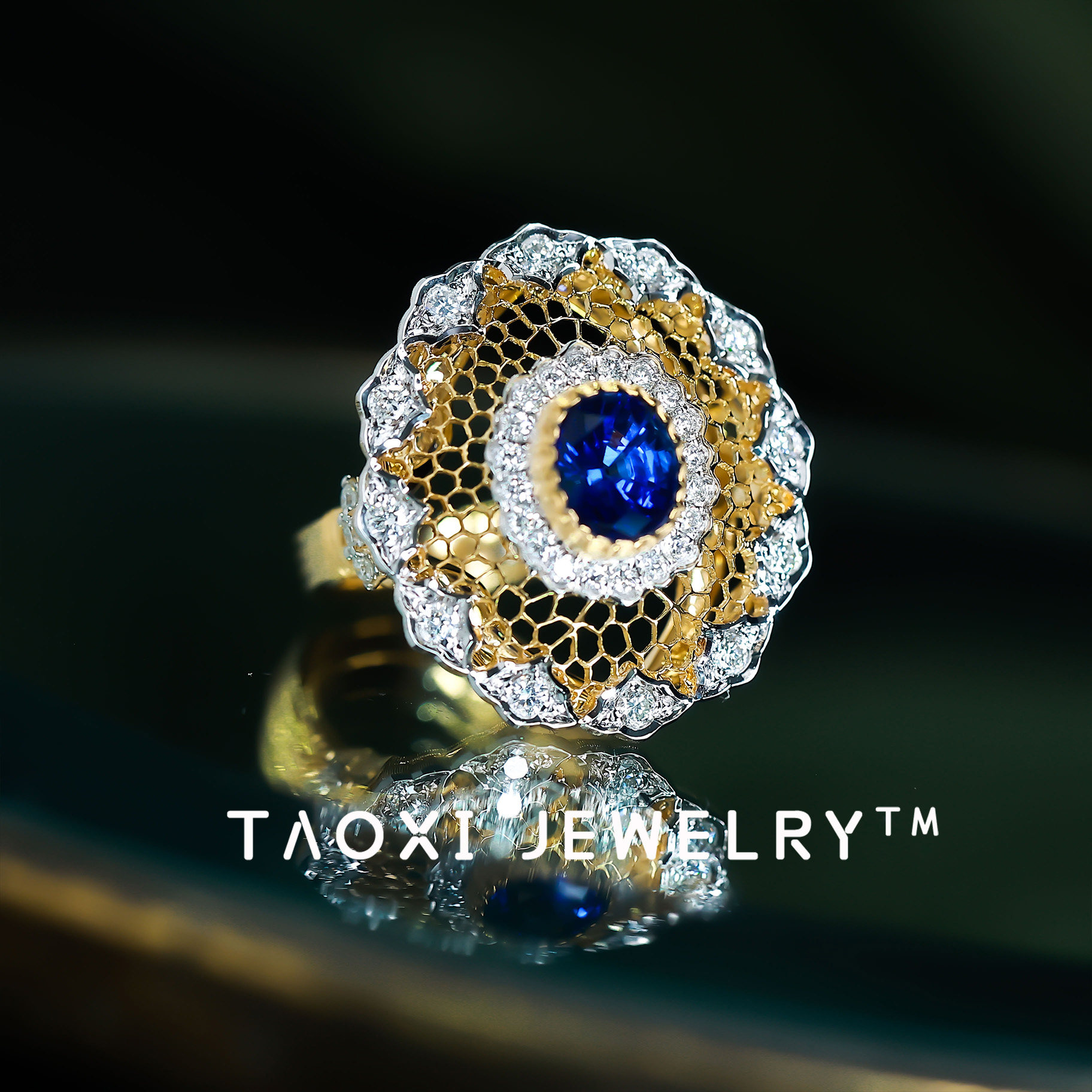 Королевское сапфировое ретро кольцо с драгоценными камнями, золото 750 пробы