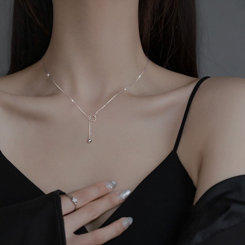Ожерелье, летний свитер, цепочка до ключиц, серебро 925 пробы, легкий роскошный стиль, изысканный стиль