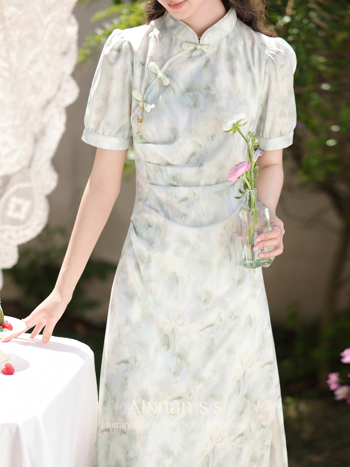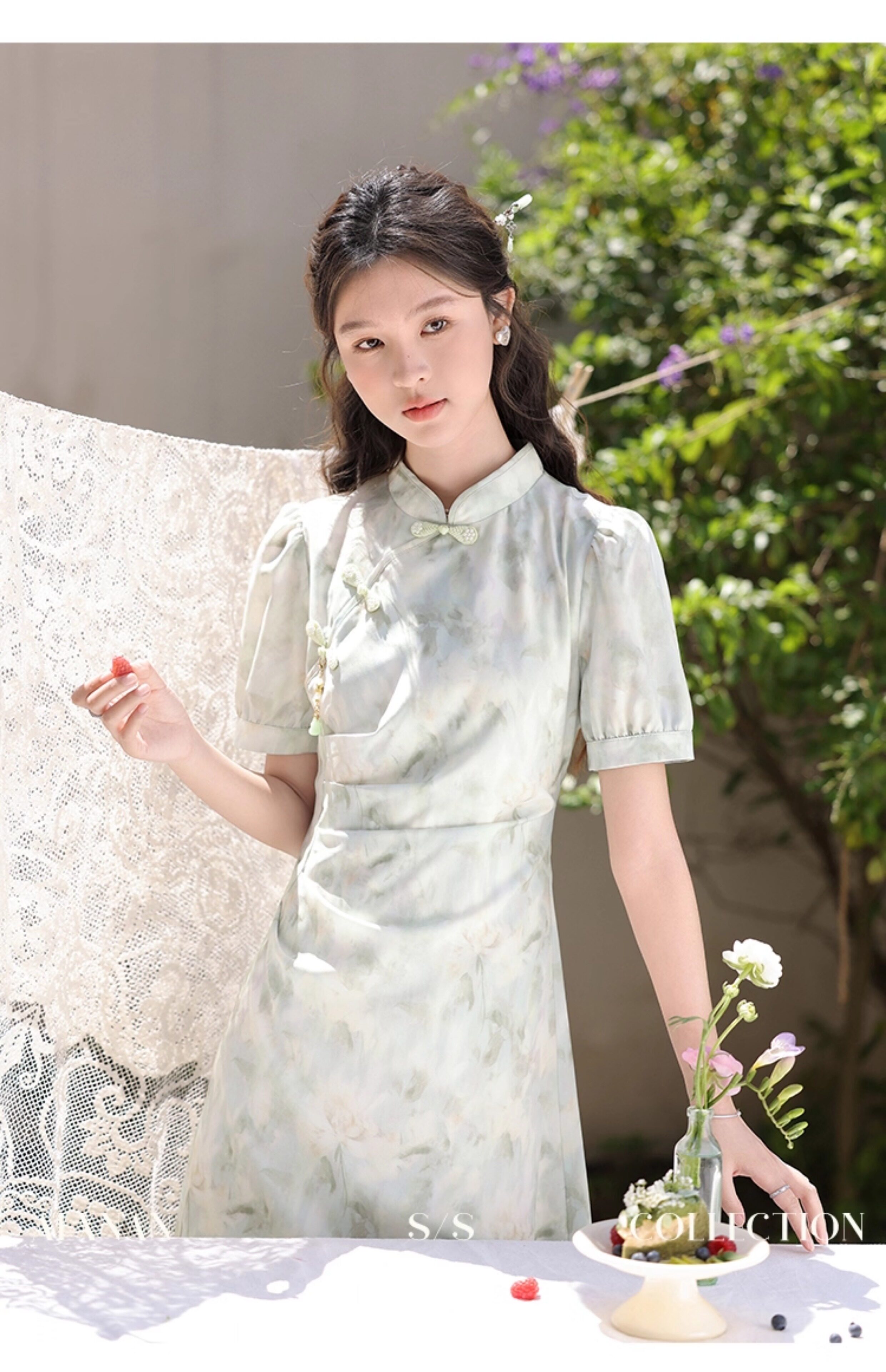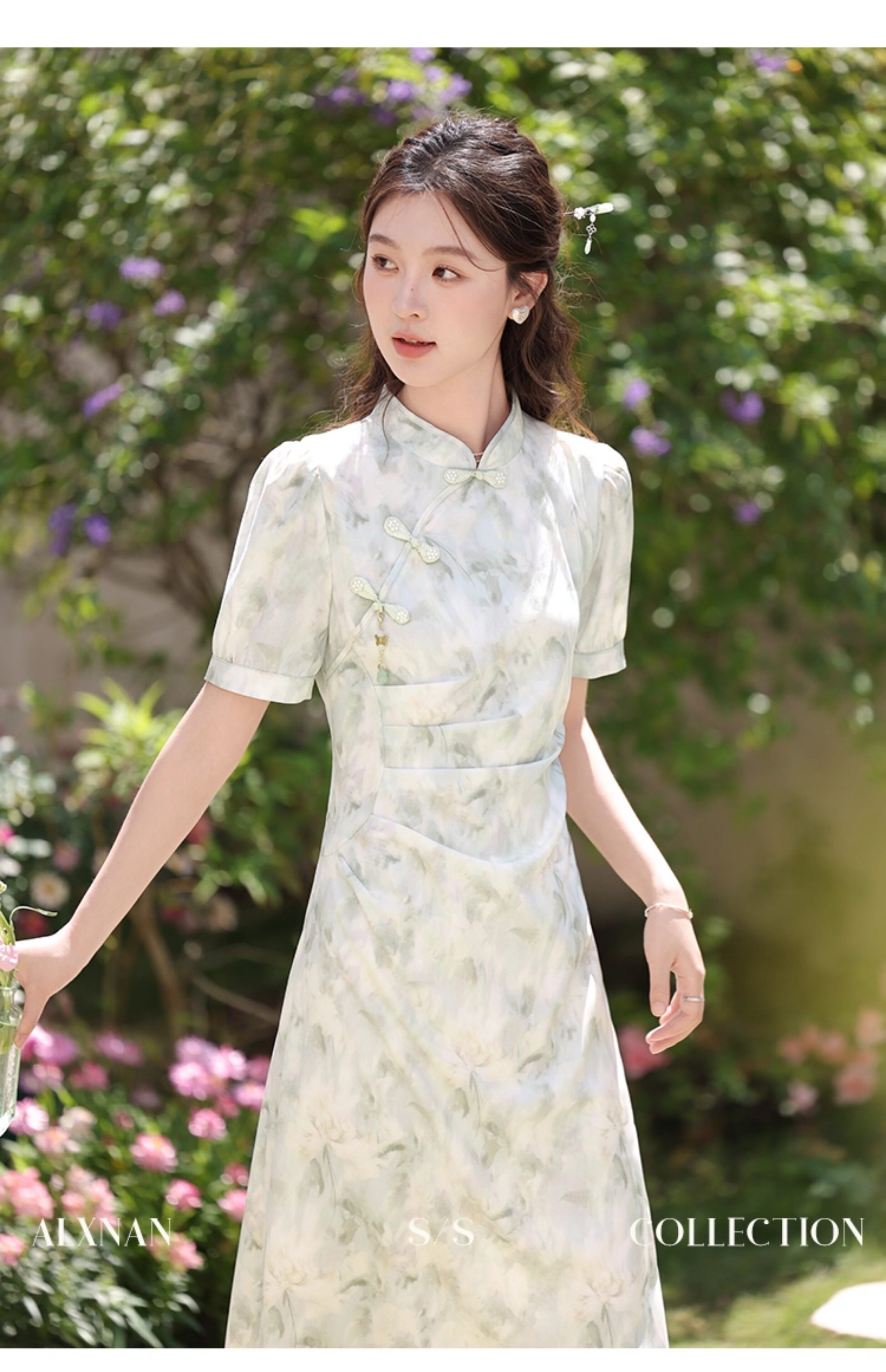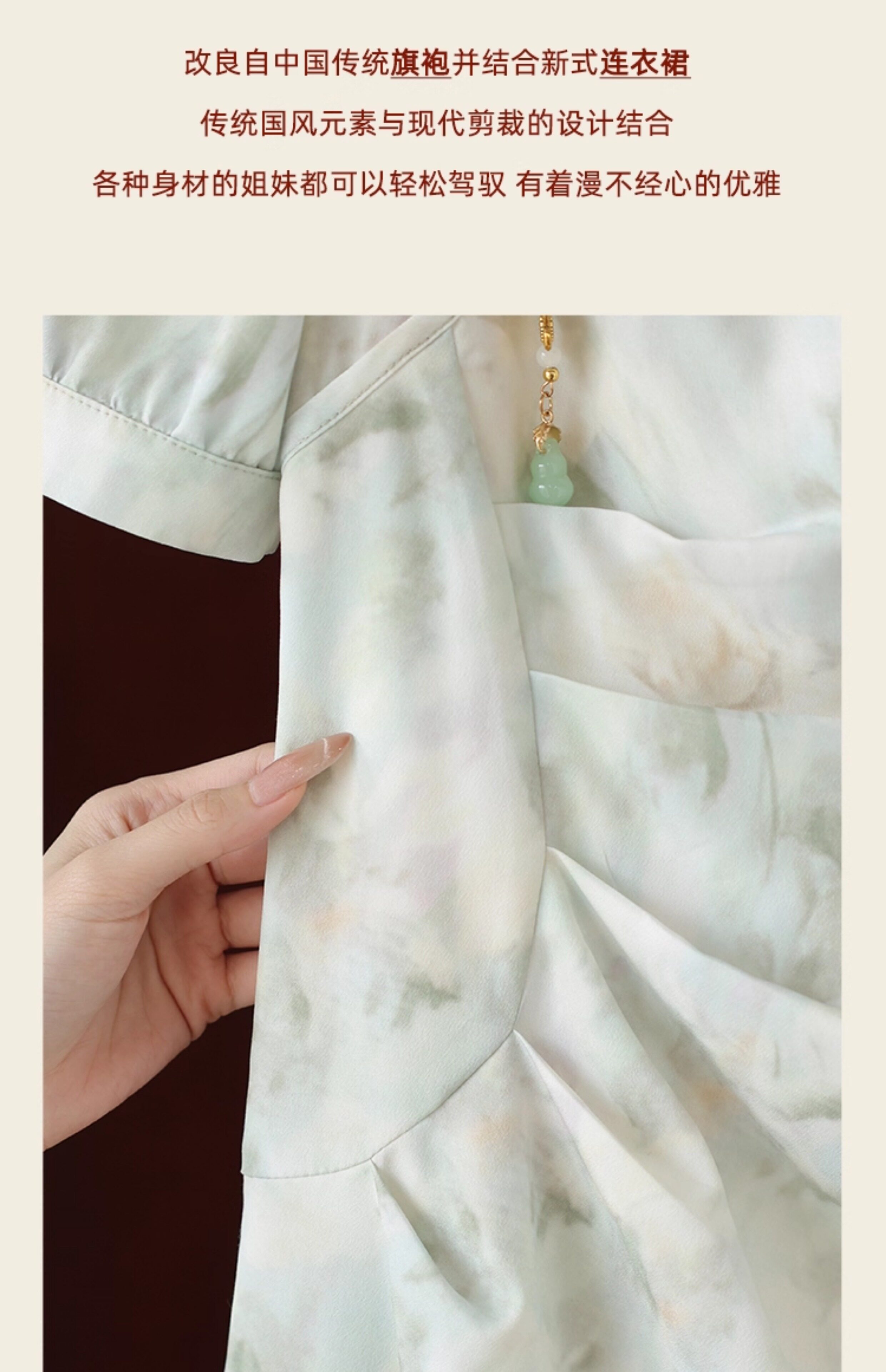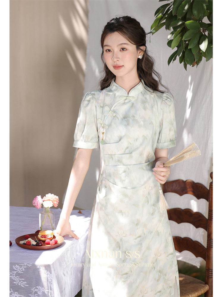 鹿向南 Ципао, платье, тонкая мятная юбка, китайский стиль