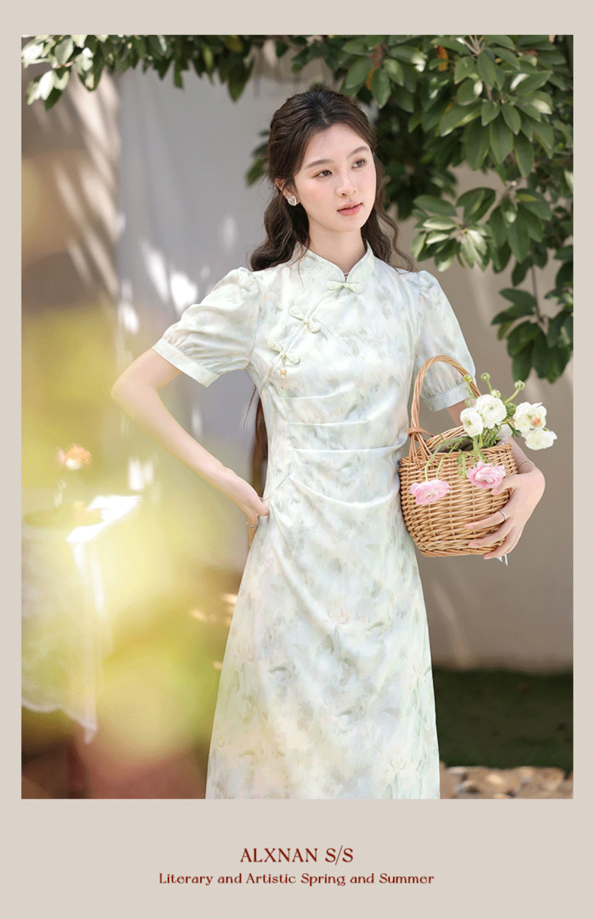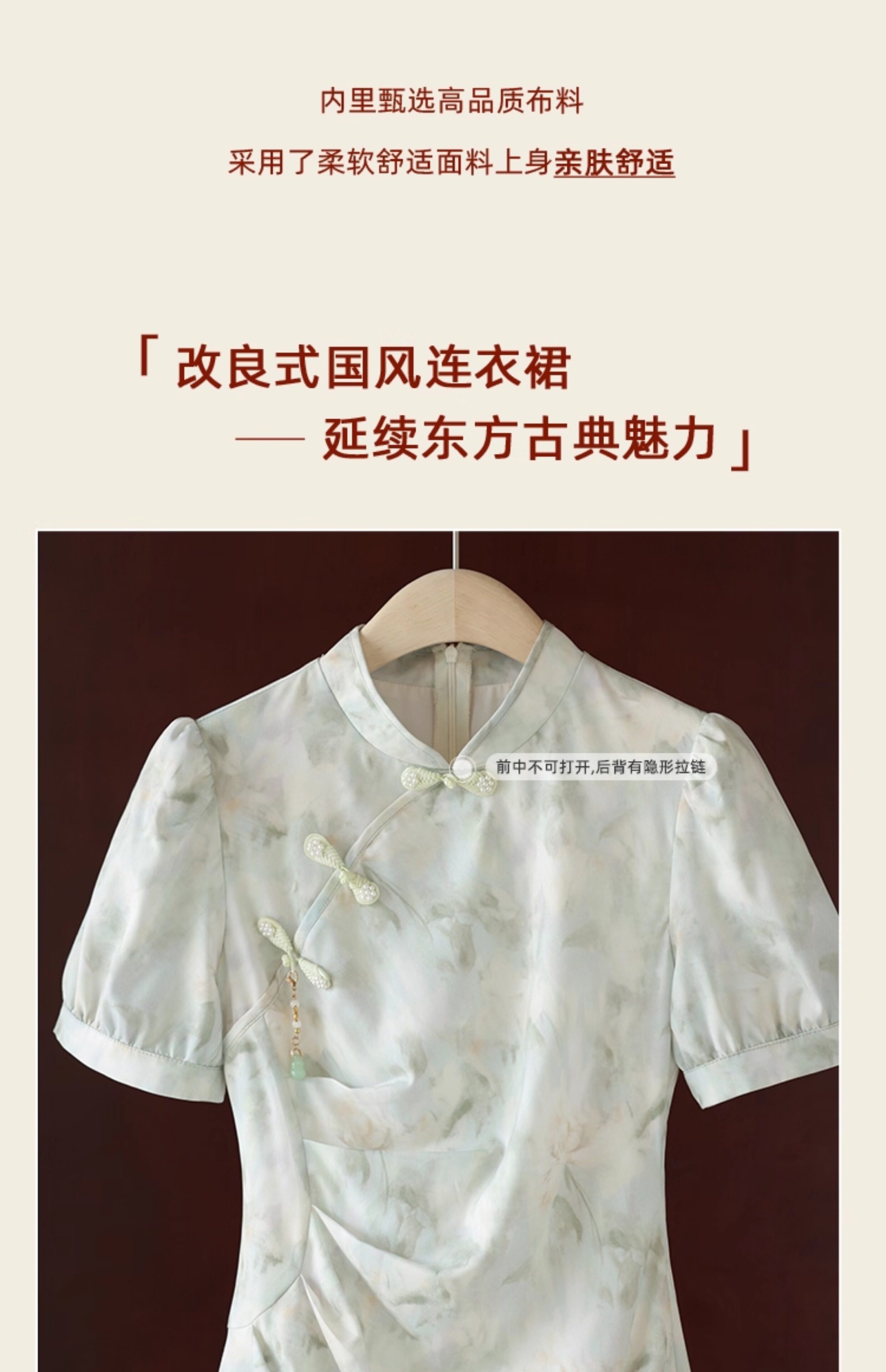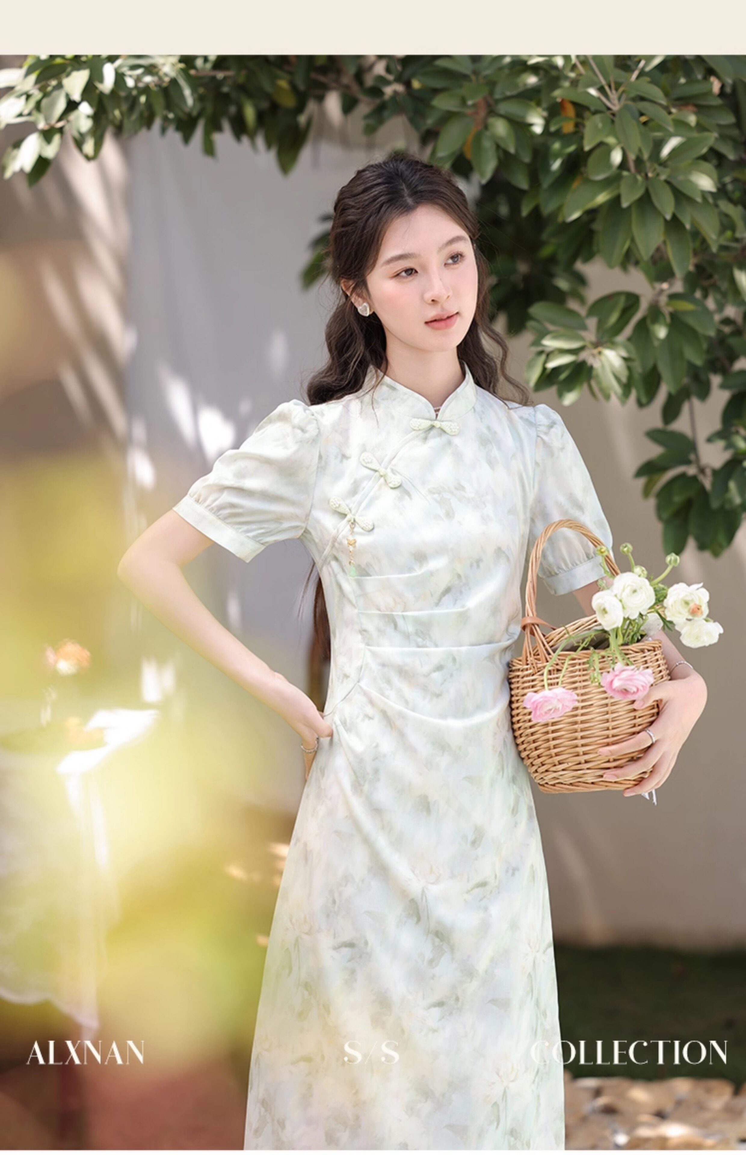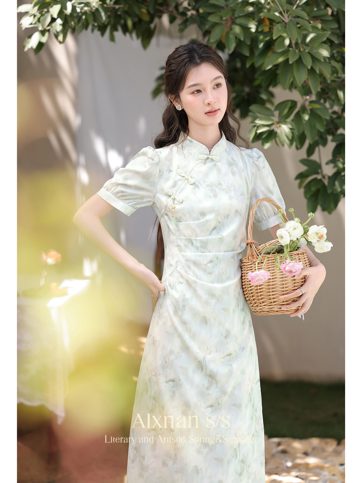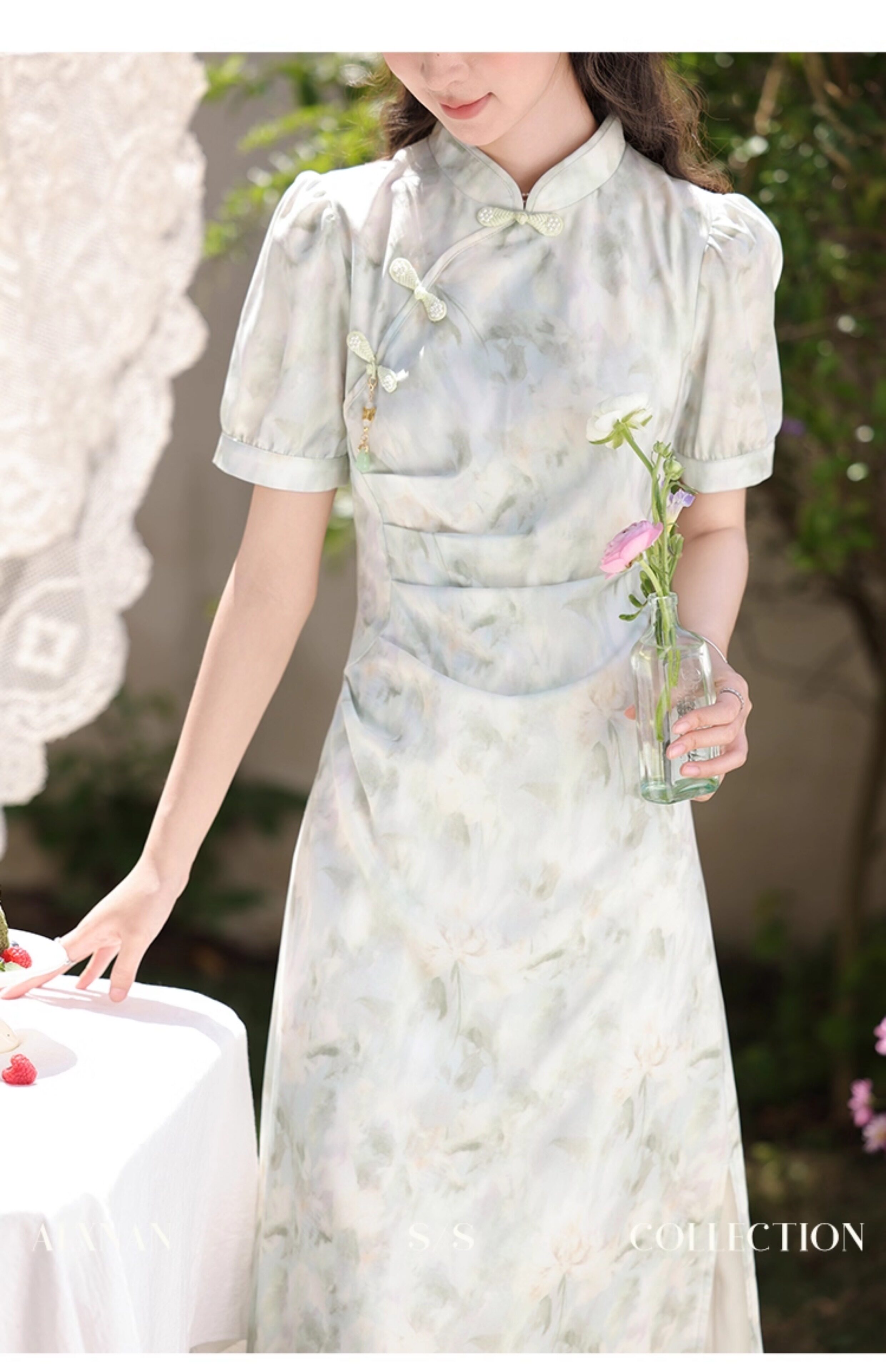 鹿向南 Ципао, платье, тонкая мятная юбка, китайский стиль