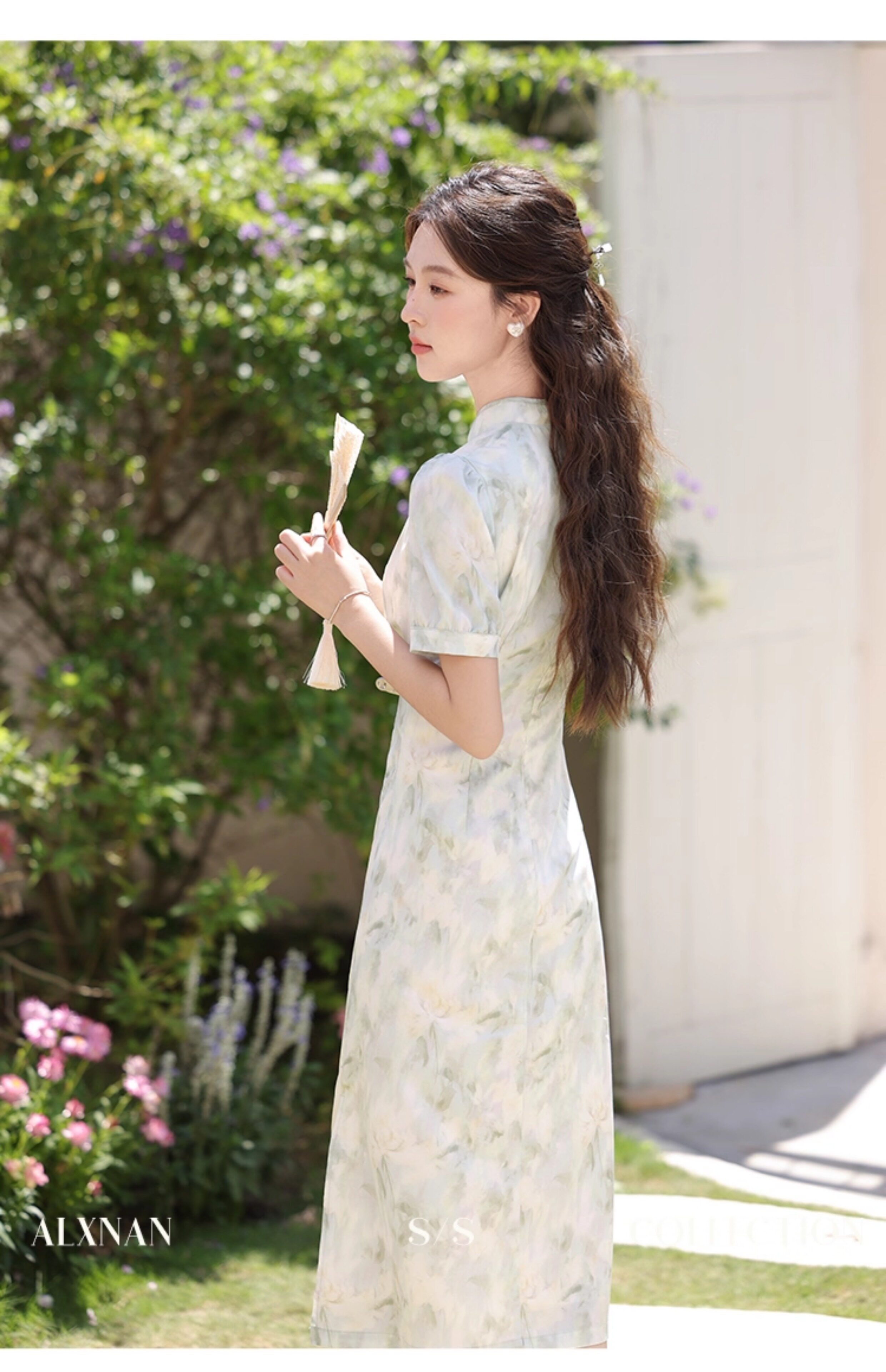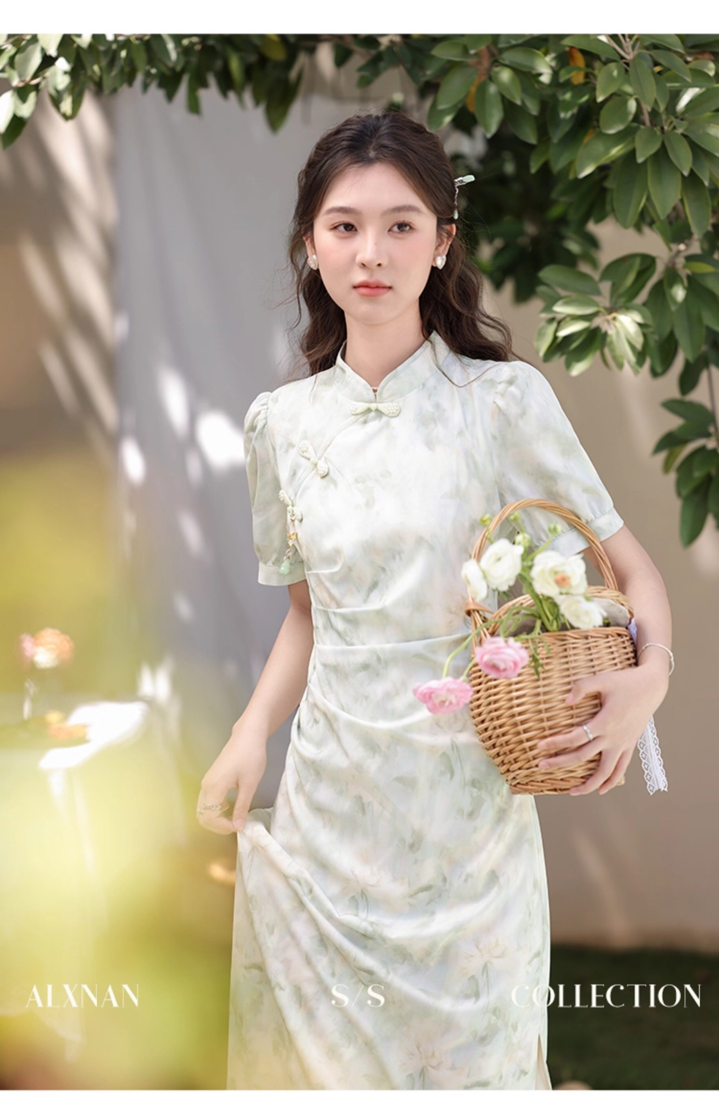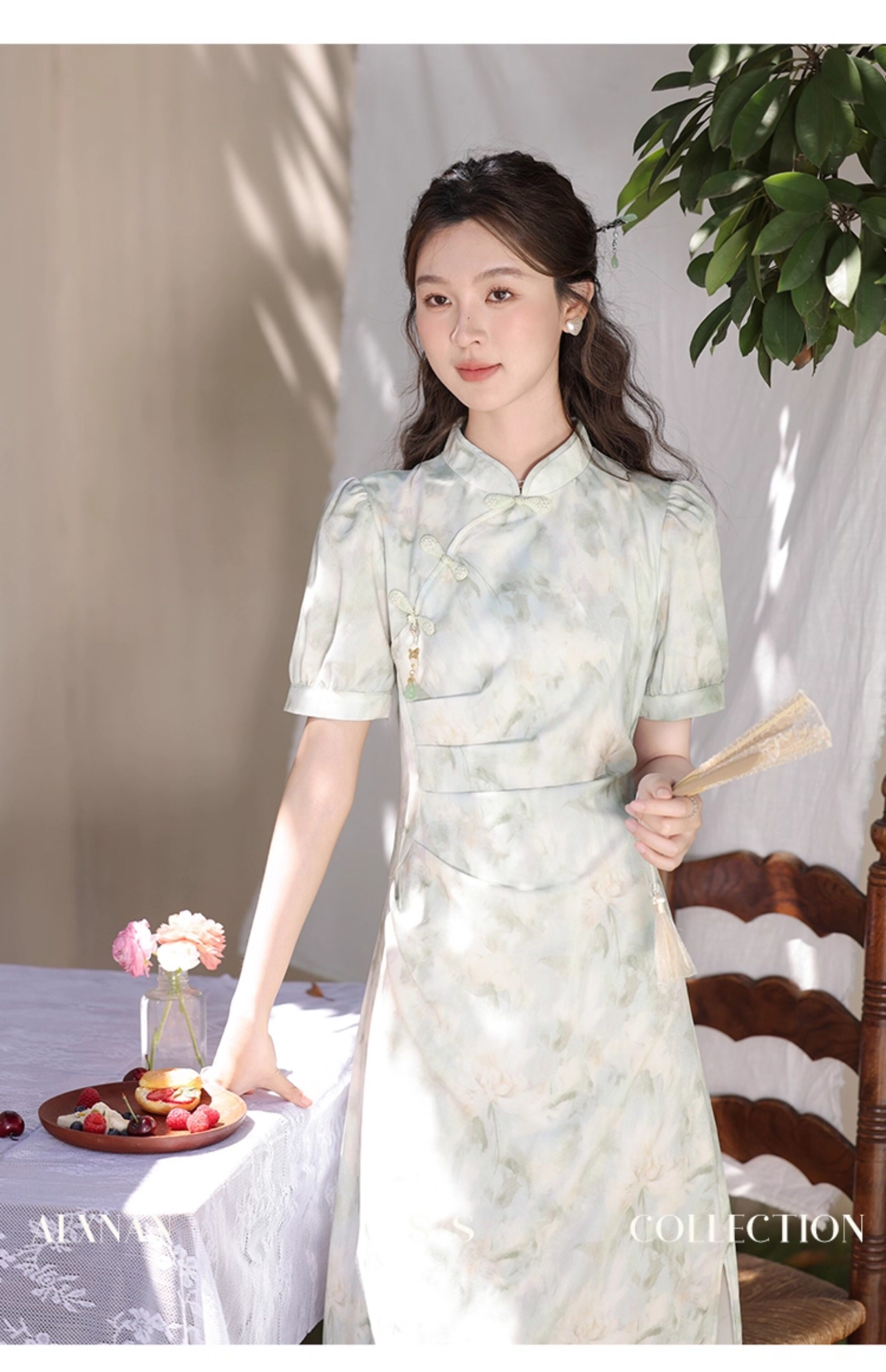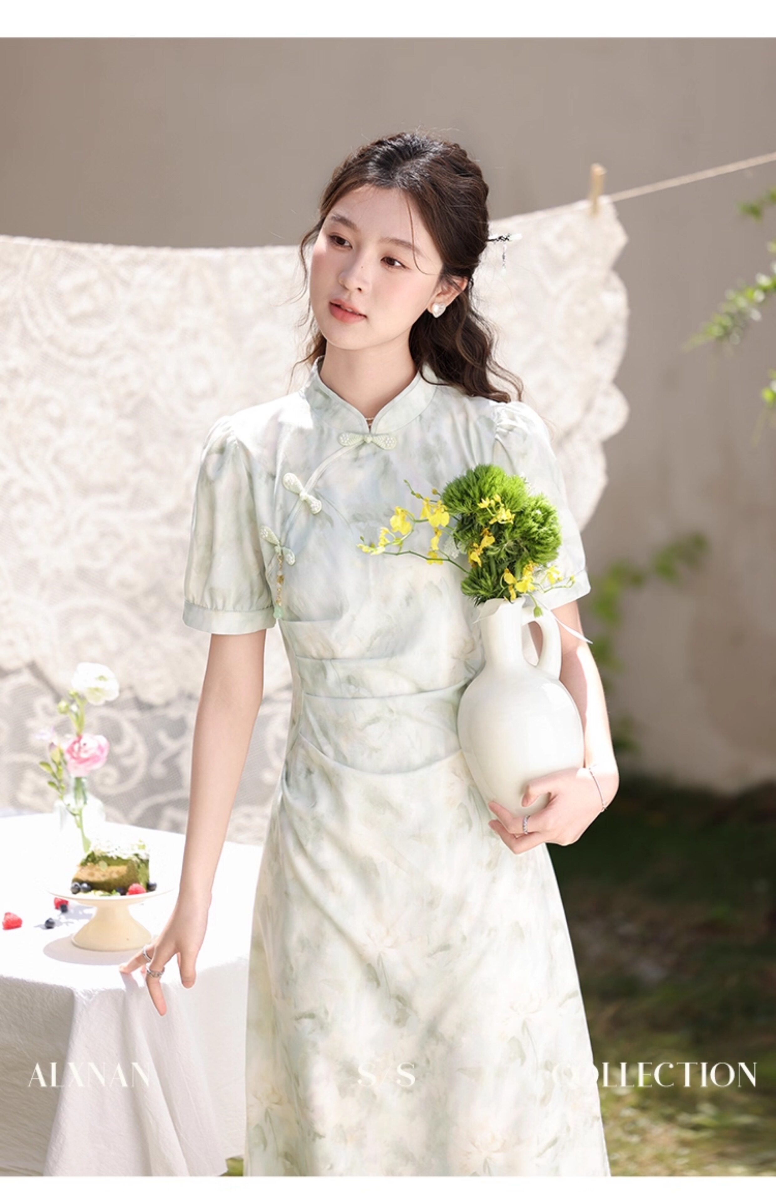 鹿向南 Ципао, платье, тонкая мятная юбка, китайский стиль