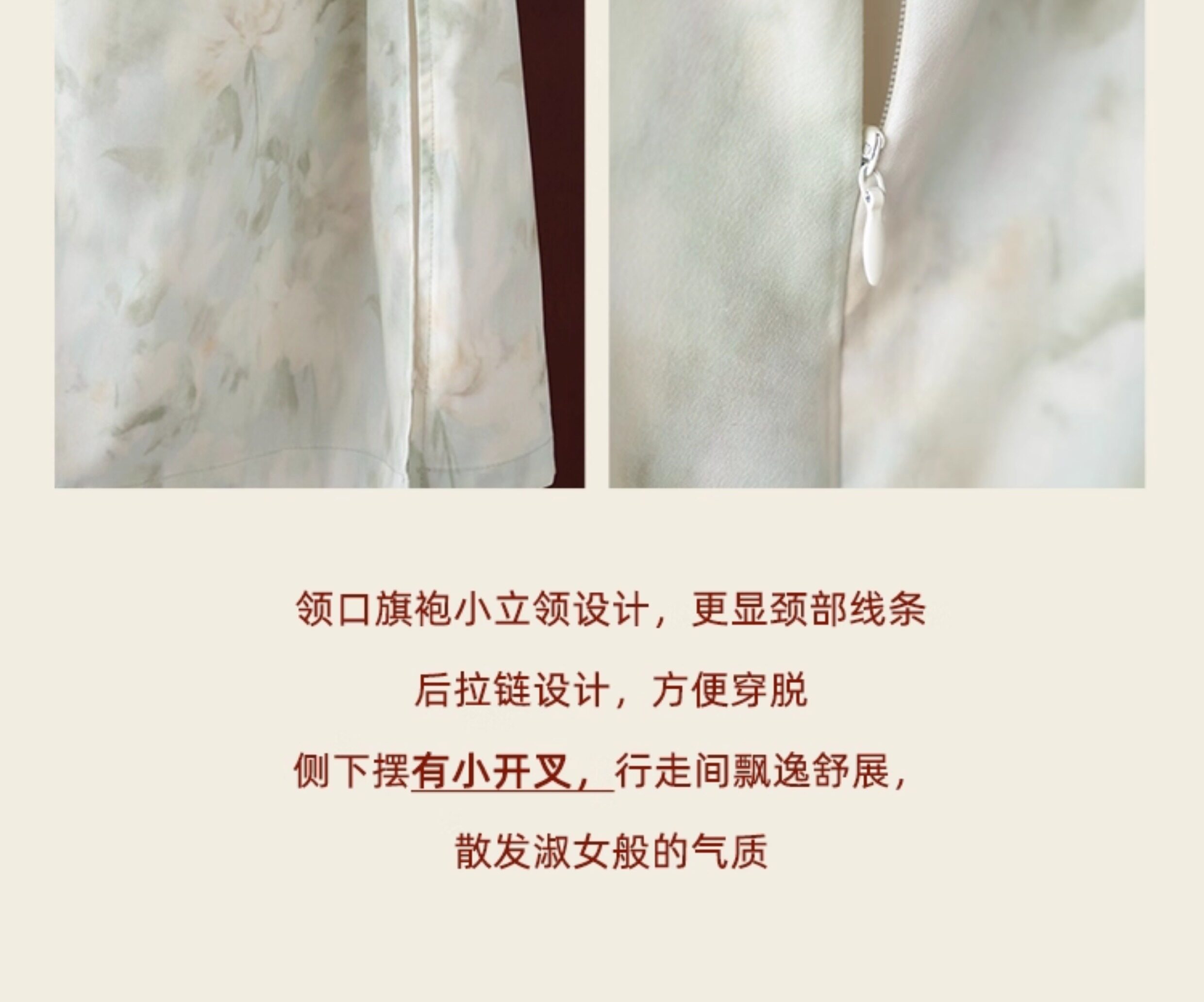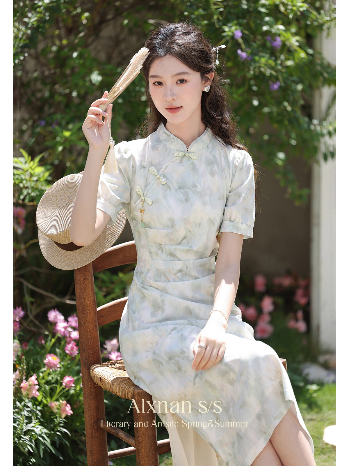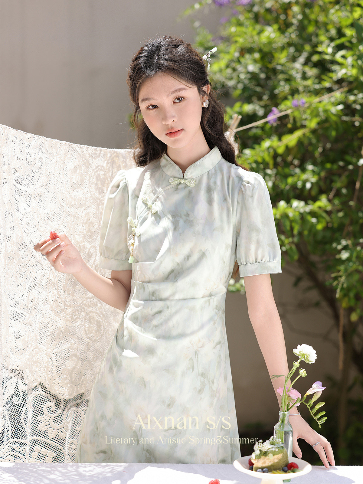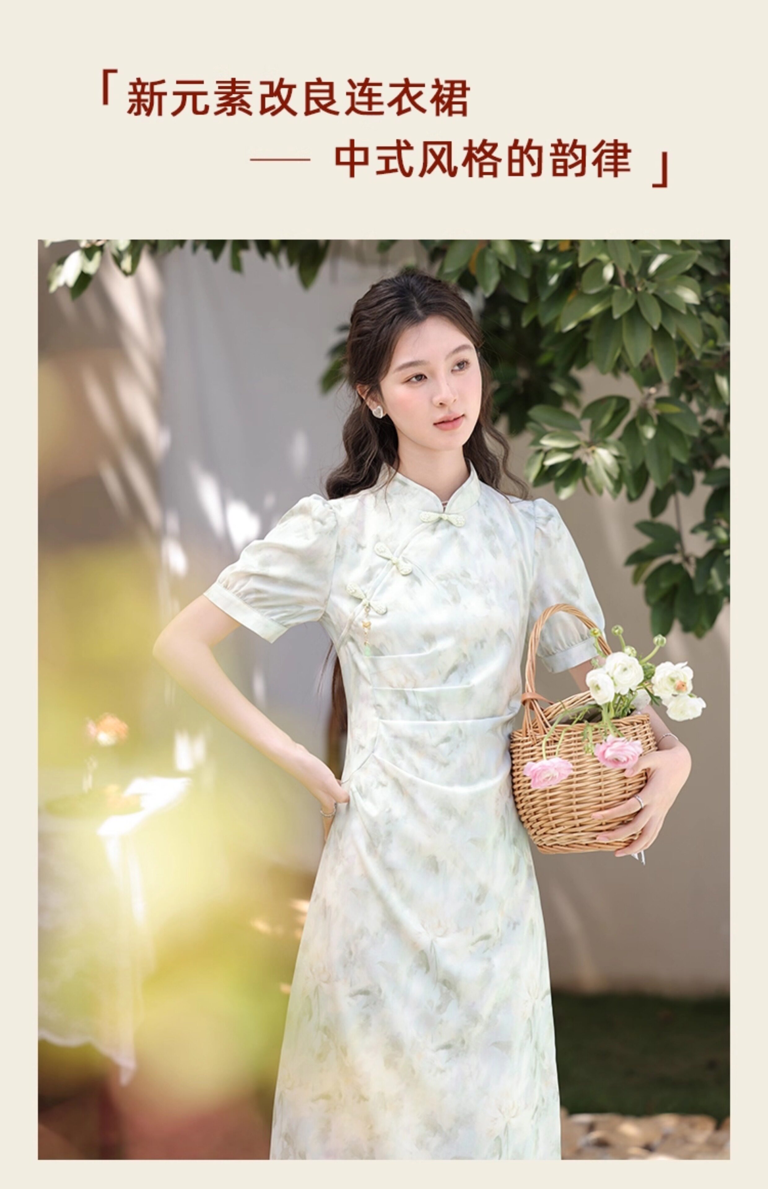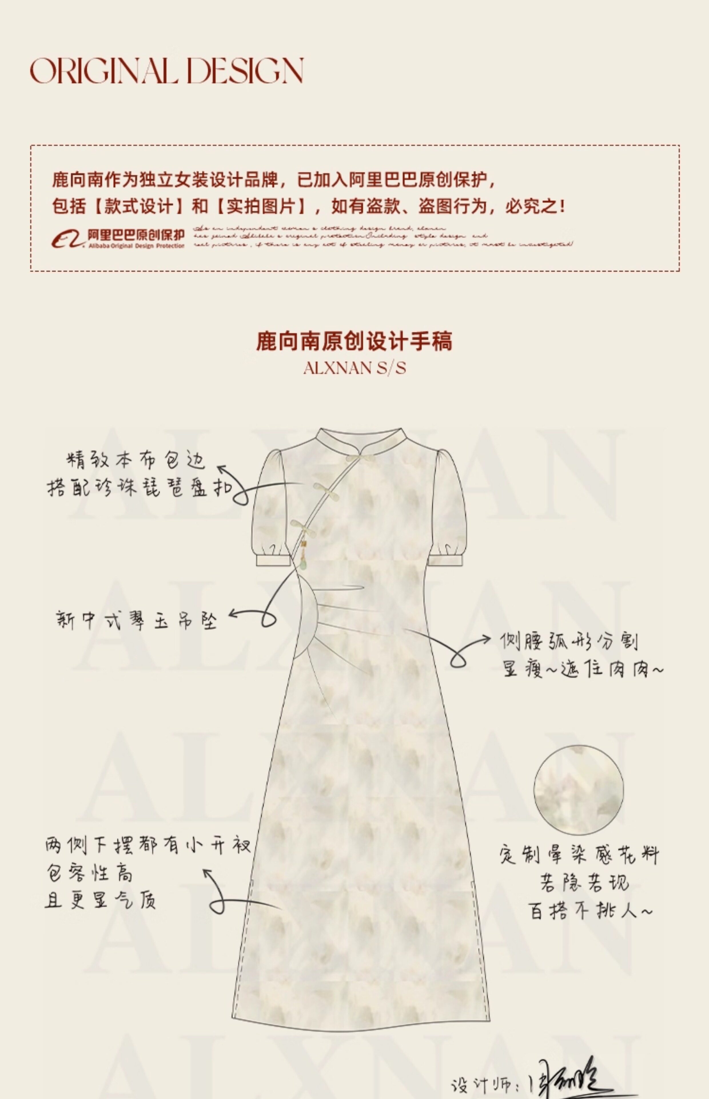 鹿向南 Ципао, платье, тонкая мятная юбка, китайский стиль