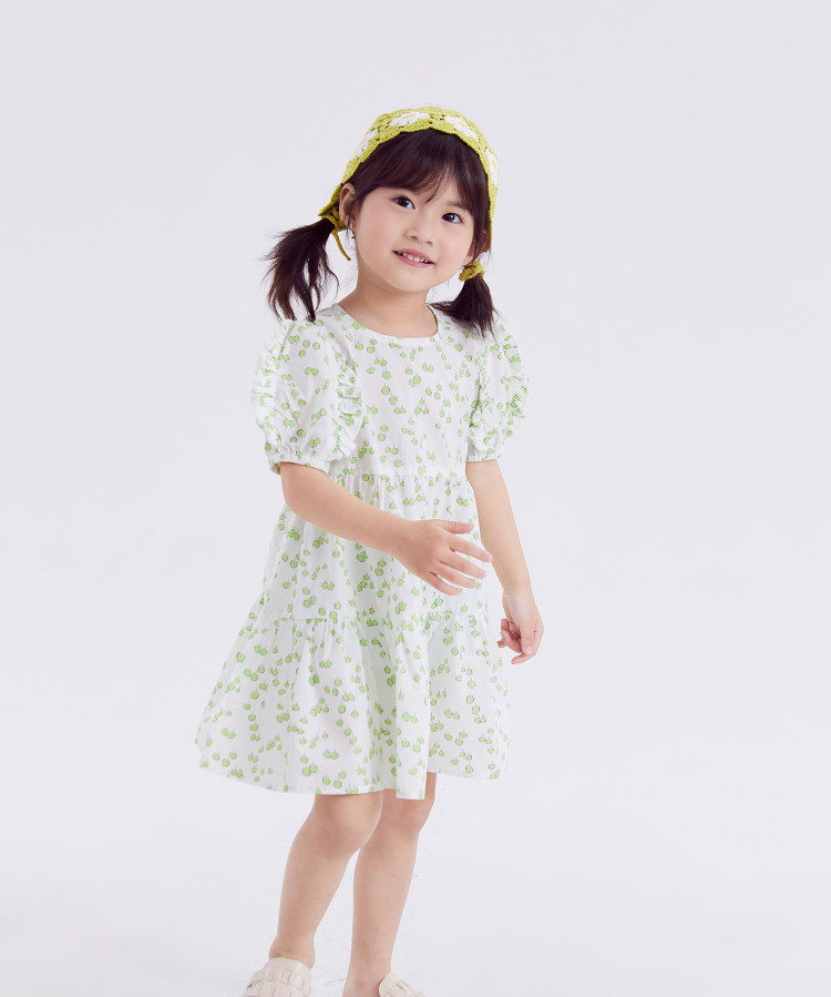 Летняя детская летняя одежда, платье с коротким рукавом с круглым воротником, юбка на девочку