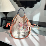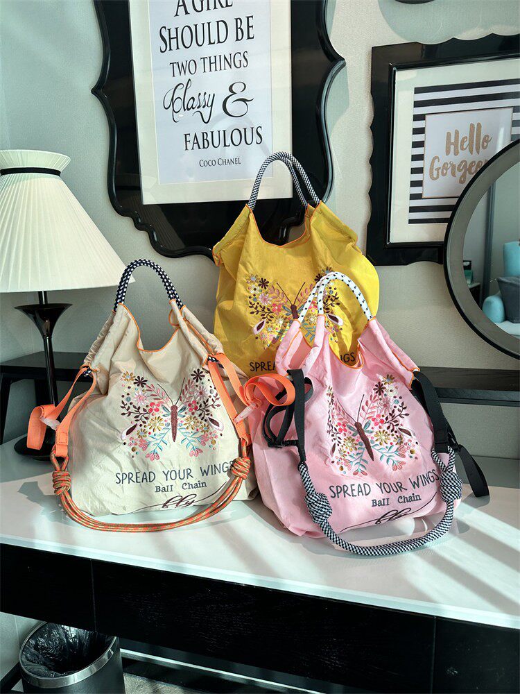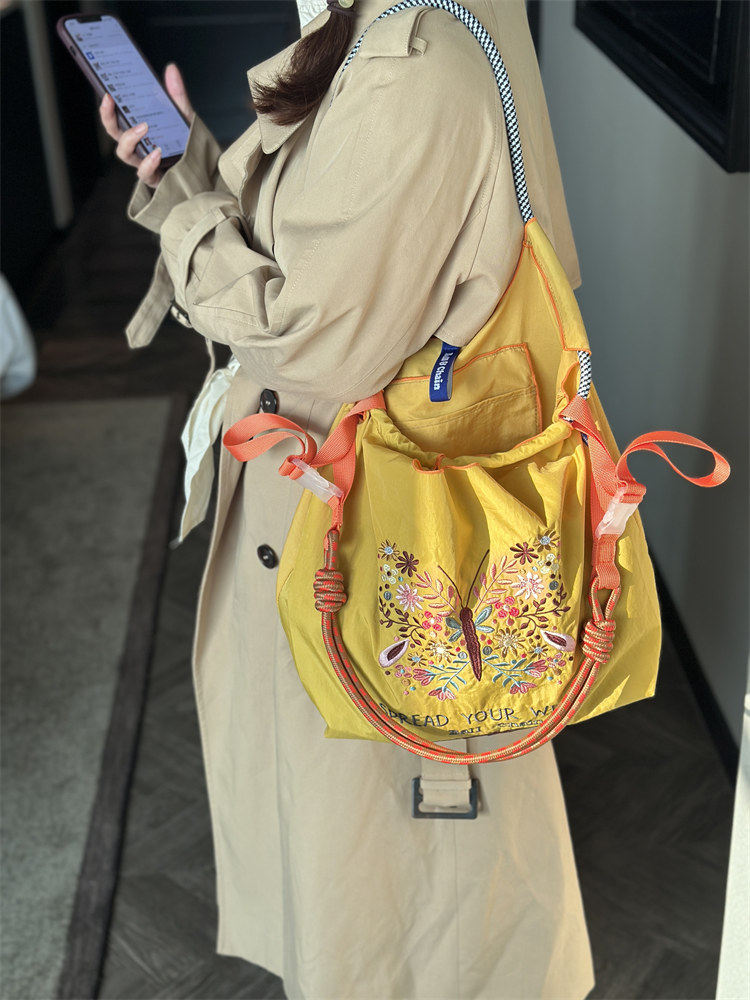 Японский ремешок для сумки на одно плечо, вместительная и большая сумка, с вышивкой