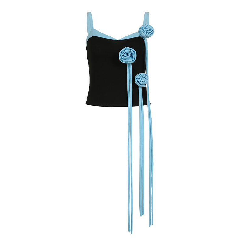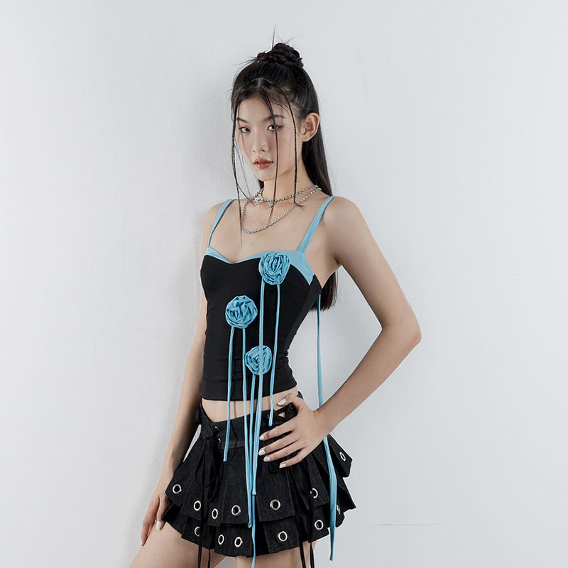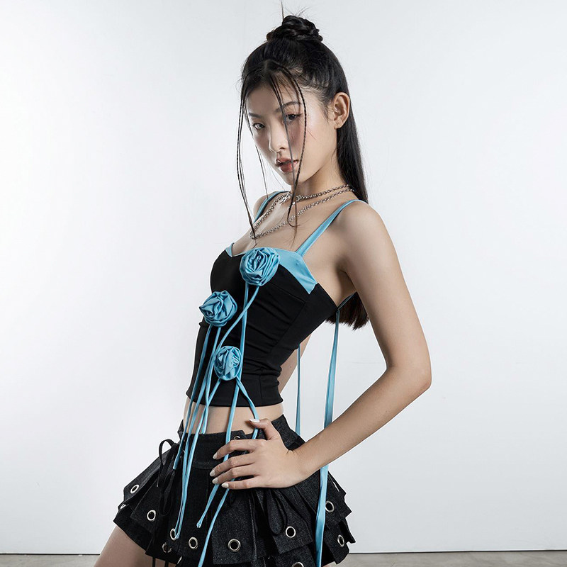 WEEKEEP [Любовь в голубом небе] Небесно-голубой жилет с лентой и цветочной лентой для женщин, чтобы носить утягивающий танцевальный топ