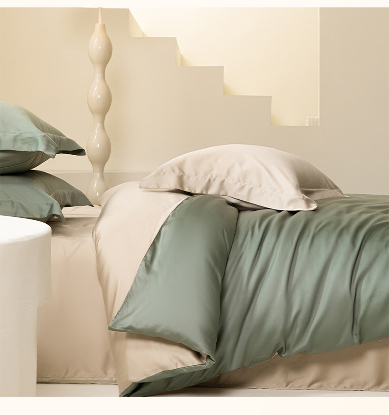 - Зеленый лайм + цвет слоновой кости [хлопок Lyocell Tencel, приятный для кожи для сна обнаженным]