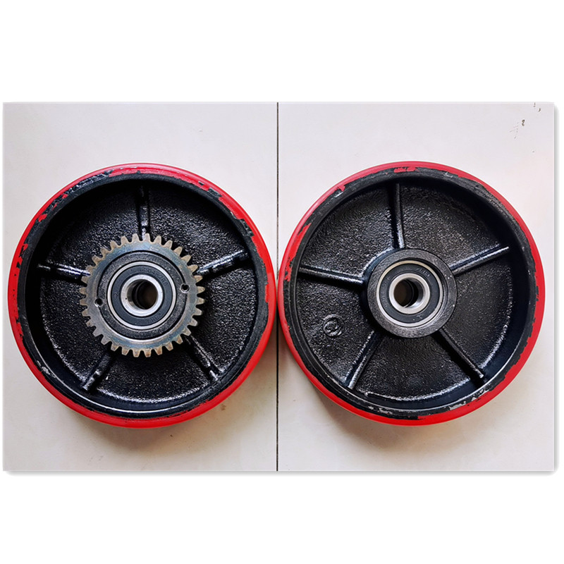 Большие колеса полуэлектрических колес вилочных погрузчиков с шестернями поворачиваются к колесо